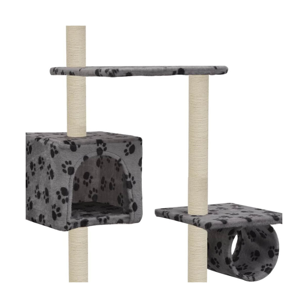 Arbre À Chat Avec Griffoirs En Sisal 260 Cm Gris Motif Pattes - Accessoires Pour Chats - Meubles Pour Chats - Gris - Gris
