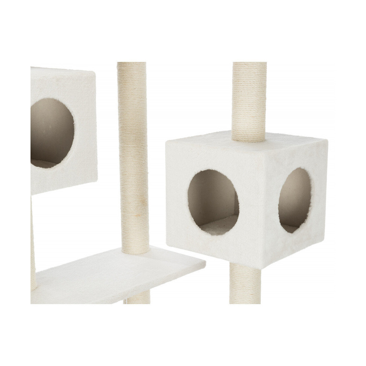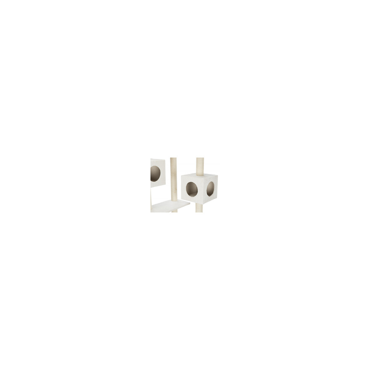 Arbre a chat Raquel -Recouvert de peluche (polyester) - Poteaux habillés de jute - Maisons habillées de peluche/fibre polaire (polyester) - Avec jouets suspendus a un fil - Convient aussi en équipement de maison pour plusieurs chats - 199 cm - CremeSpécifications techniques