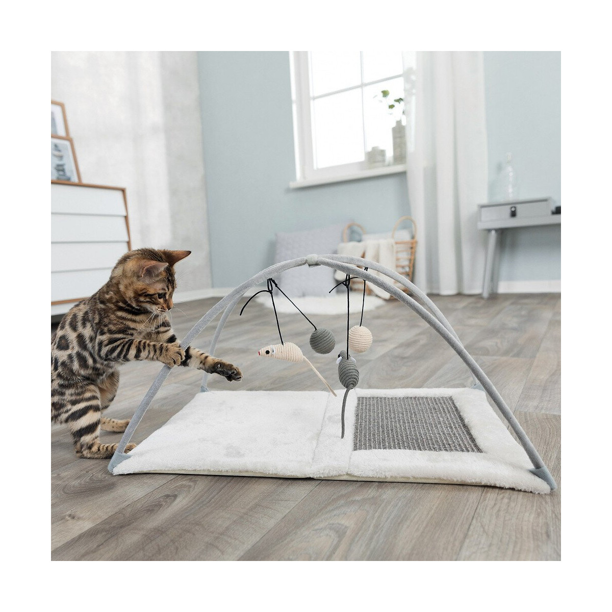 Trixie Tapis Griffoir - 60 X 33 X 42 Cm - Avec Jouets Suspendus A Un Fil - Gris Clair - Pour Chat