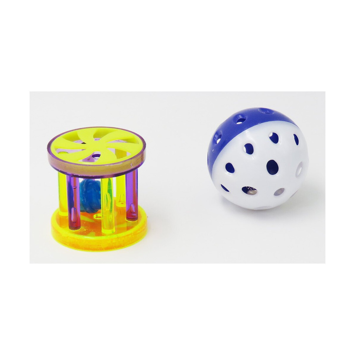 lot une balle et un rouleau, plastique lot 1 balle et 1 cylindre avec clochette en cylindre plastique coloris aléatoire Dimensions: ø 4,5 cm lot une balle et un rouleau, plastique lot 1 balle et 1 cylindre avec clochette en cylindre plastique coloris aléatoire Dimensions: ø 4,5 cm Photo non contractuelle, car il y a plusieurs vendeurs sur une même fiche produit.Spécifications techniques