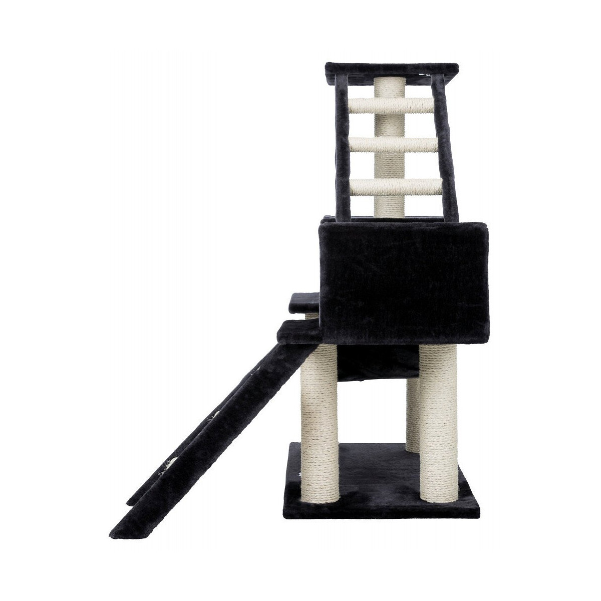Arbre à chat Malaga. En sisal : ø 6 mm/peluche (polyester) : 270 g/m². Maisons habillées de peluche/fibre polaire (polyester). 2 maisons habillées de feutrine, 36 x 26 x 45 cm 2 échelles, 29 x 61 cm plateforme, 36 x 36 cm hamac, 47 x 30 cm • poteaux habillés de sisal naturel • recouvert de peluche Couleur : anthracite. Emprise au sol: 70 × 45 cm. hauteur total:109 cm Poteau: ø 9 cm. Taille de filetage: M8. Arbre à chat Malaga. En sisal : ø 6 mm/peluche (polyester) : 270 g/m². Maisons habillées de peluche/fibre polaire (polyester). 2 maisons habillées de feutrine, 36 x 26 x 45 cm 2 échelles, 29 x 61 cm plateforme, 36 x 36 cm hamac, 47 x 30 cm • poteaux habillés de sisal naturel • recouvert de peluche Couleur : anthracite. Emprise au sol: 70 × 45 cm. hauteur total:109 cm Poteau: ø 9 cm. Taille de filetage: M8. Photo non contractuelle, car il y a plusieurs vendeurs sur une même fiche produit.Spécifications techniques