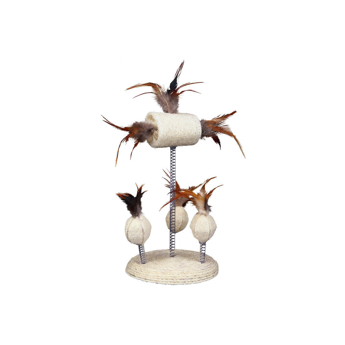 Jouets en luffa sur ressorts, sisal sisal avec jouets en luffa et plumes. Dimensions: ø 15 × 30 cm. Jouets en luffa sur ressorts, sisal sisal avec jouets en luffa et plumes. Dimensions: ø 15 × 30 cm Photo non contractuelle, car il y a plusieurs vendeurs sur une même fiche produit.Spécifications techniques