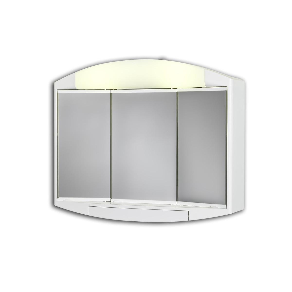 Armoire de toilette fluocompactes couleur blanche. Caractéristiques: 3 portes miroirs Ouverture trypique Tiroir en partie basse Prise et interrupteur à l'intérieur de l'armoire en partie supérieure droite