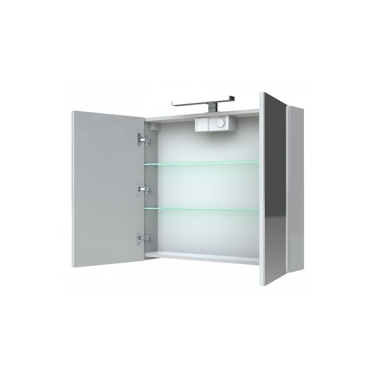 Armoire de toilette éclairante blanche brillante - Éclairage Led 6W - Deux portes miroir Soft close - Deux étagères en verre amovibles repositionnables - Avec bloc prise et interrupteur - Classe 2 - IP44 - Installation hors volume - Classe énergétique : A+ - Vendue sans vis de fixation support mural (à adapter en fonction de votre mur) ARMOIRE LIVREE MONTEE, APPLIQUE A RACCORDER LORS DE L'INSTALLATION (Voir dessin technique téléchargeable) Dimensions : 80x75.2x16 cm Couleur : Blanc BrillantSpécifications techniques