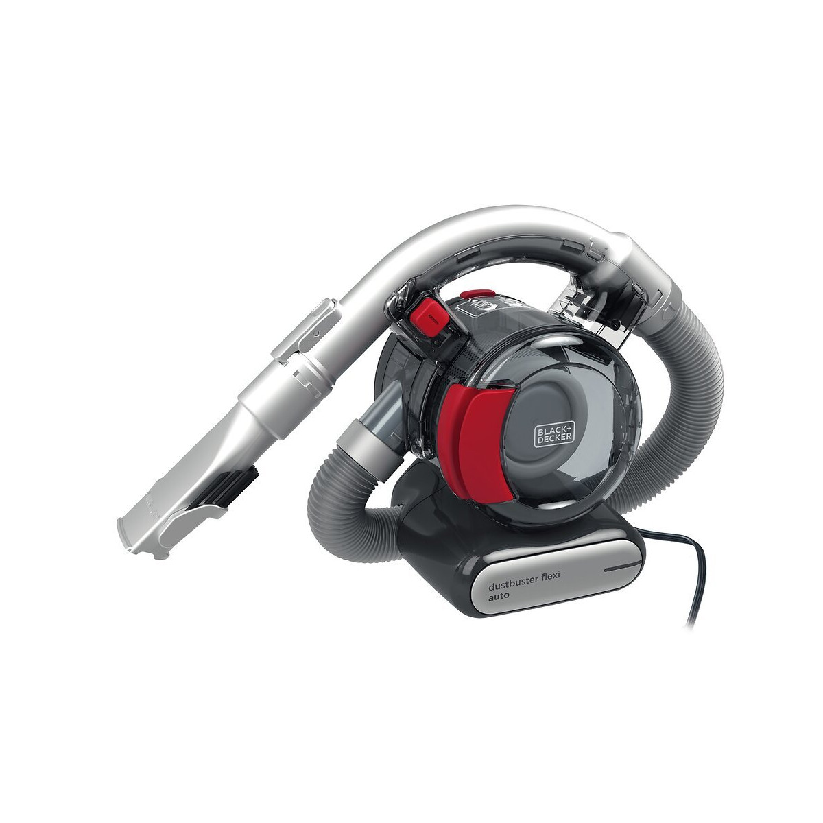 DUSTBUSTER FLEXI AUTO 12V avec flexible intégré et action cyclonique . Flexible intégré extensible jusqu'à 1,50m pour une accessibilité optimale . Système breveté avec un moteur situé à l'intérieur du filtre pour un produit très compact. Action cyclonique : optimise la puissance d'aspiration . 3 niveaux de filtration : pré-filtre plastique rigide pour les grosses particules, filtre secondaire plissé plus fin et filtre de sortie d'air. Bol facile à vider sans contact avec la poussière. Branchement sur prise allume-cigare . Livré avec sac de rangement, prolongateur avec brosse rétractable et embout suceur