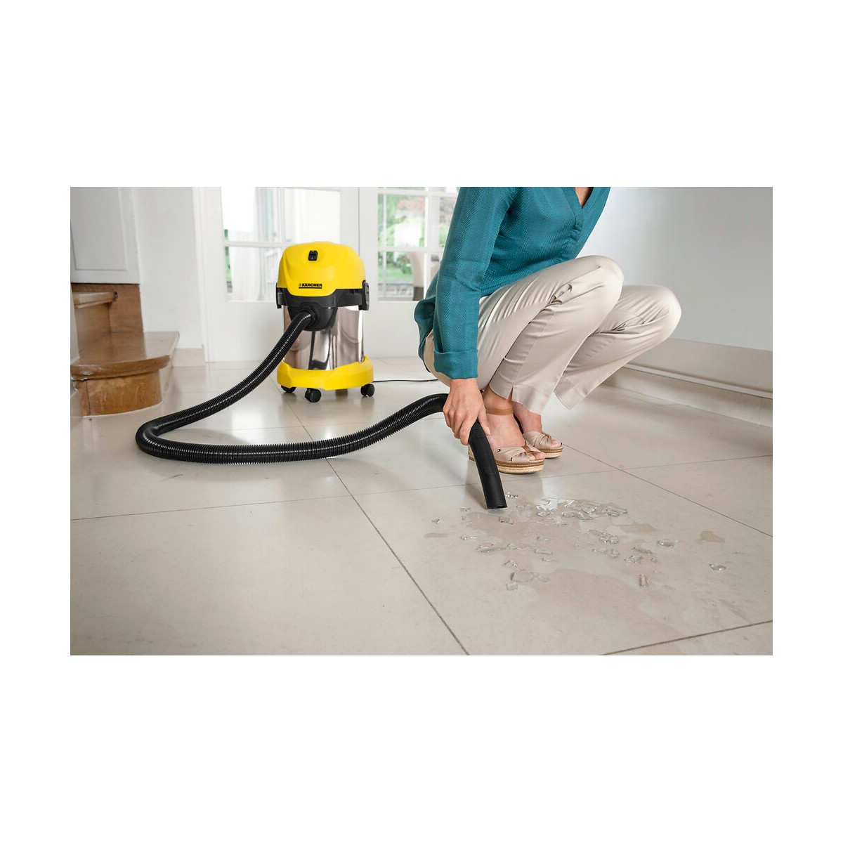 Le partenaire idéal pour le véhicule, le garage, le sous-sol ou encore la cave ainsi que d'autres zones nécessitant de petites quantités d'eau. Il est également très pratique pour le nettoyage extérieur grâce à sa fonction soufflerie. L'ouverture de la cuve est encore plus facile avec un nouveau système ''Pull and push ''. La position parking est idéale lors des interruptions de travail. Les accessoires sont toujours disponibles grâce au rangement pratique des accessoires sur l'appareil. Poignée ergonomique et flexible optimisé. Caractéristiques : - Cuve acier Inox : 17L - Consommation électrique : 1000 W - Puissance d'aspiration : 200 Air Watt - Moteur : Universel Bypass - Longueur flexible : 2m - Diamètre du tuyau : 35mm - Longueur du tube : 2x0, 5m - Longueur câble : 4m - Fonction soufflerie - Protection antichocs - Position parking - Poids : 5, 8kg - Dimensions : 38, 8cmx34cmx52, 5cm Equipement : - Buse pour sol avec clips eau et poussière - Filtre cartouche - Suceur long - Sachet filtre papierSpécifications techniques