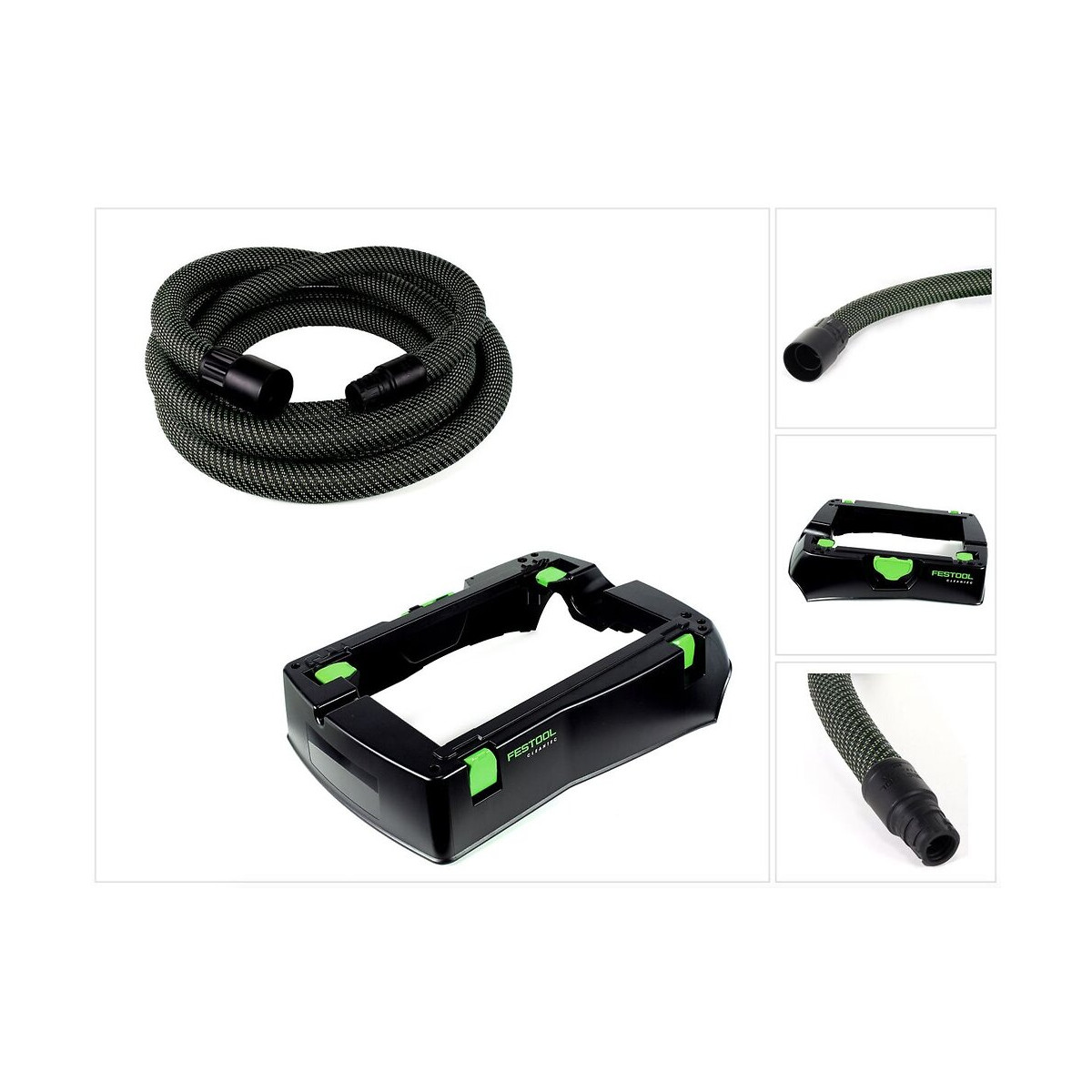 Contenu du paquet: -1x Festool Capot de rangement de tuyau CT 26/36 FL VP ( 204040 ) -1x Festool Tuyau d'aspiration D 27/32x5,0m-AS/CT ( 500678 ) Description du produit: Le capot CT 26/36 FL VP ( 204040 ) de Festool est un capot robuste et de haute qualité pour les aspirteurs mobiles Festool et est facile à transporter. Il sert à ranger le tuyau d'aspiration et le câble d'alimentation. Ce capot Festool est équipé d'une connexion T-LOC pour fixer les boîtes à outils SYSTAINER, SORTAINER et SYS. Le tuyau d'aspiration D 27/32x5,0m-AS/CT ( 500678) de Festool est un tuyau lisse et souple qui glisse parfaitement sur toute surface. Grâce à son élasticité et sa flexibilité, il facilite votre travail et vous permet d'obtenir une finition plus rapide. De plus, il est antistatique, conique et a une résistance à la température jusqu'à +70°C. Sa géométrie conique (27mm à 32mm) lui offre une meilleure performance d'aspiration. De plus, ice tuyau d'aspiration de Festool dispose d'une compensation de rotation et d'un manchon d'aspiration de connexion qui assure l'ajustement sûr à votre l'outil. Spécifications techniques: Festool Capot de rangement de tuyau CT 26/36 FL VP ( 204040 ) : Compatibilité : CTL/CT/CTM 26/36 Poids: 1,4 kg Festool Tuyau d'aspiration D 27/32x5,0m-AS/CT ( 500678 ) : Résistance à la température : jusqu'à + 70°C Caractéristiques : lisse, antistatique, conique Longueur : 5,0 m Diamètre : 27/32 mm Compatibilité : CT 26/36/48