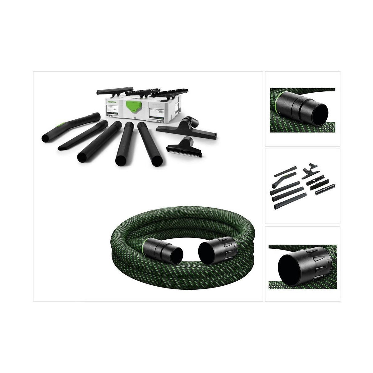 Contenu du paquet: -1x Festool D 36/32x3,5m-AS Tuyau d'aspiration antistatique ( 500682 ) -1x Tube coudé D 36 HR-K AS -3x Rallonges D 36 VR-K AS -1x Kit de nettoyage 4-teilig D 36 BD270 -1x Buse étroite D 36 FD-210 -1x Buse ameublement D 36 PD - Coffret de transport SYSTAINER SYS 1 T-LOC Description du produit: Ce kit de nettoyage Festool D 27 / D 36 K-RS-Plus vous propose l’équipement de base pour le nettoyage des accessoires. L'ensemble comprend quatre fixations différentes pour différents revêtements de sol, ce qui permet un nettoyage facile presque partout. La buse à crevasse est idéale pour extraire la poussière des zones difficiles à atteindre. Le kit de nettoyage complet est livré dans un Systainer 1 T-LOC pratique et peut ainsi être transporté et rangé. Le tuyau d'aspiration Festool D 27 / 32x3,5m-AS-90 ° / CT est un tuyau souple et lisse qui glisse parfaitement sur la surface. Son élasticité et sa flexibilité facilitent le travail et la finition plus rapidement. Le tuyau d'aspiration est optimisé pour les unités d'aspiration avec Autoclean. Il est antistatique, conique et résiste à des températures allant jusqu'à + 70 ° C. La géométrie conique (32mm à 36mm) offre une meilleure puissance d'aspiration. Spécifications techniques: Tuyau d'aspiration Festool D 36 / 32x3,5m-AS: Résistance à la température: jusqu'à + 70 ° C Texture: lisse Longueur: 3,50 m Diamètre: 36/32 mm Kit de nettoyage Festool D 27 / D 36 K-RS-Plus dans Systainer: Tube à main courbe Festool D 36 HR-K AS: Diamètre: 36 mm, courbe, antistatique, avec glissière de réglage de la pression d'air pour la régulation de la puissance d'aspiration, avec verrouillage à baïonnette Suceur plat D 36 FD-210: Diamètre: 36 mm, longueur: 210 mm Tubes de rallonge D 36 VR-K AS, longueur: 950 mm, antistatique, en 3 parties Buse de sol 4 pièces D 36 BD270: Diamètre: 36 mm, largeur: 270 mm, 4 pièces, en plastique avec 3 inserts interchangeables (brosses, lèvres en caoutchouc, tapis) Dimensions: L xlxh: 396 x 295 x 105 mm Poids: 2,11 kg