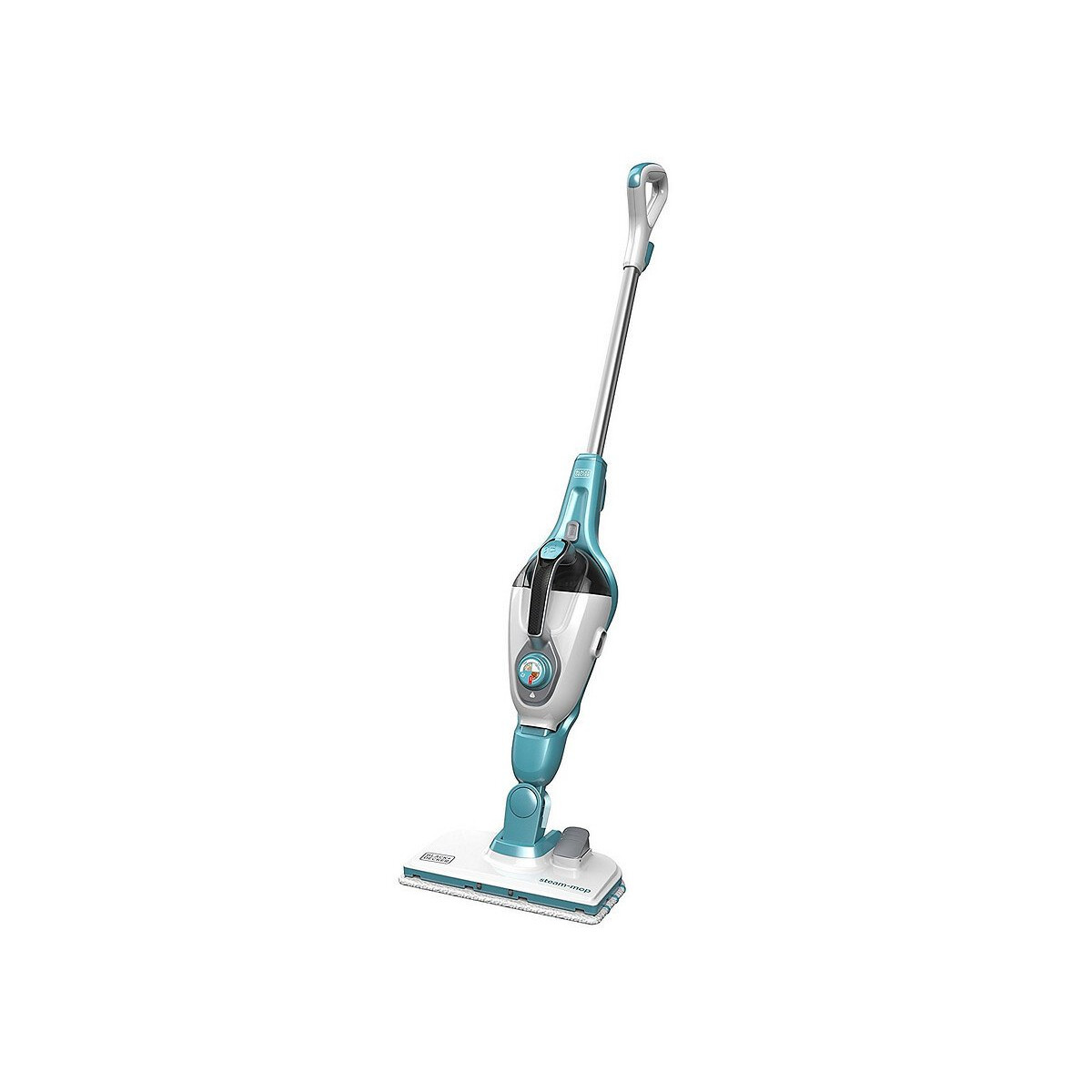 fsmh1321jsm - Nettoyeur balai vapeur 13 en 1 BLACK & DECKER FSMH1321JSM. Vos tâches ménagères ne seront plus aussi pénibles grâce à notre nouvelle gamme steam-mop?. Plus légers et puissants, nos balais vapeur détruisent 99.9% des germes et bactéries avec seulement l?eau du robinet. Le nouveau SteaMitt? révolutionne le nettoyage de votre maison en mettant la puissance de la vapeur au creux de votre main. La fonction boost vapeur délivre un débit de vapeur supplémentaire pour une efficacité même sur les traces les plus tenaces en un rien de temps.Élimine 99.9% des bactéries au sol et sur toutes les surfaces étanches / imperméabilisées.Nouvelle génération de balai vapeur équipé du nettoyeur à main GANT EN SILICONE STEAMITT? détachable, plus léger et maniable.Balai vapeur avec système Autoselect® pour ajuster automatiquement le débit vapeur en fonction du type de sol.Pédale Boost vapeur pour désincruster les tâches les plus tenaces au solChauffe très rapide en 15 secondes.Grand réservoir transparent de 500ml pour vérifier l'eau restante à tout instant.Livré avec les accessoires pour le balai: 1 patin en microfibre multi-surfaces et 1 adaptateur moquette.Livré avec les accessoires pour le nettoyeur à main: 1 gant en silicone STEAMIT et 1 patin en microfibre, 1 tuyau 1.2m et sa buse orientable, 1 raclette et sa housse microfibre , 1 brosse longue, 1 brosse ronde, 1 brosse ronde à poils en métal. - Type de Produit : Balai vapeur. Utilisation : Nettoyage du Sol. Types de Revêtement : Pour Tout Type de Plancher Rigide. Puissance (V) : 1300 Watts. Capacité du Réservoir à Eau : 500 ml. Longueur du câble : 6 m. Temps de chauffe : 15 sec. Autonomie : 10-20 min. Patins en Micro-fibre : 3. Nombre d'accessoires Inclus : 9. Coloris : Blanc et Turquoise. Système de vapeur : Système de réglage AutoSelect?. Autonome : Non. Système de libération du câble : Oui. Indication du niveau d'eau : Non. Système anti-calcaire : Oui. Réservoir lumineux : Non. Trou pour la fixation murale : Non. Interrupteur marche/arrêt : Oui. Coloris : Blanc/bleu.