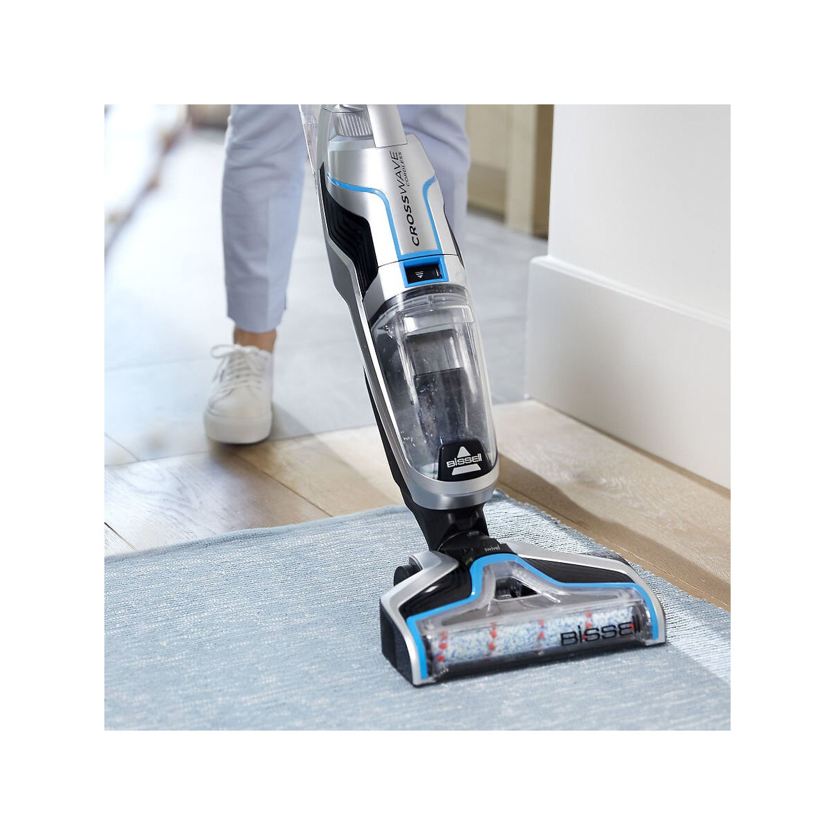 2582n - Le nettoyeur balai vapeur 3en1 Bissell 2582N CrossWave Cordless propose le meilleur du CrossWave.... mais sans fil !!! La batterie Li-Ion de 36V confère à l'appareil une autonomie de près d'une demi-heure, ce qui permet un cycle de nettoyage sans recharge ! Advanced est le nettoyeur multisurface 3-en-1 fait pour simplifier notre vie avec cheveux longs ou poils d'animaux domestiques. Il aspire, lave et contribue à sécher les sols en un seul geste : sols en bois massif, carrelages et même tapis grâce à sa brosse spéciale. La brosse rotative tourne à 3000 t/min. pour éjecter poils, cheveux et fibres vers le réservoir d'eau sale qui est équipé d'une crépine retenant les matières fibreuses pour éviter la formation de paquets susceptibles d'altérer le fonctionnement de l'appareil. Les fibres ainsi retenues peuvent facilement être jetées à la poubelle alors que l'eau sale peut être évacuée sans contenir de paquets. La technologie 2 réservoirs faciles à enlever et remettre assure la séparation totale entre l?eau propre et l?eau sale : la garantie de laver avec une eau toujours propre.Bénéfices consommateursAppareil multifonctions 3-en-1 qui supprime toutes les étapes et tous les instruments habituellement requis pour nettoyer la maison.Technologie sans fil avec batterie Li-Ion de 36V pour un cycle de près d'une demi-heure sans recharge (recharge 4h.).La puissante force d?aspiration contribue au séchage des sols et évite la formation de traînées.Le système exclusif de brosse-rouleau frotte, lave et sèche pour un résultat plus rapide en un seul geste.La brosse rotative tournant à 2000 t/mn. est conçue pour éjecter les poils d'animaux, les cheveux et les fibres vers le réservoir d'eau sale.Le réservoir d'eau sale est équipé d'une crépine spéciale retenant poils, cheveux et fibres qui peuvent ainsi être jetés séparément.Réservoirs séparés pour l?eau propre et l?eau sale, faciles à enlever et à vider.Brosse-rouleau facile à enlever et plateau de rangement Easy Clean.Brosse à profil bas pour passage sous les meubles. - Type de produit : Nettoyeur vapeur balai. Catégorie : Nettoyeur multifonction 3-en-1. Surfaces : Surfaces multiples. Coloris : Bleu & Silver. Puissance : 560 W. Batterie : Li-Ion 36 V. Autonomie : 30 min. Temps de charge : 4 h. Niveau sonore : 69 dB. Programmes : 2 programmes : sols durs + tapis. Multifonctions : Aspire, lave et sèche simultanément. Filtrage cheveux et poils : Crépine cheveux/poils dans le réservoir d'eau sale. Type de filtre : Filtre lavable. Utilisation 3-en-1 : Lave, aspire et sèche. Programme autonettoyage : Oui - plateau de rangement Easy Clean. Tête pivotante : Oui - 60°. Roues : Soft Touch. Pare-chocs : Soft Touch sur la brosse. Poignée : Confort - Soft Touch. Poignée de transport : Oui. Commandes : Digital Touch Control intégrées dans la poignée. Gâchette de dosage eau/formule : Oui. Indicateur d'aspertion : LED dans la brosse - s'allume lors de l'aspertion. Protection de brosse amovible : Oui. Réservoir eau propre : 0.82L. Réservoir à déchets : 0.62L. - coupure de sécurité. Réservoir à eau amovible : Oui. Réservoir à déchets amovible : Oui. Longueur de câble : ***. Tient debout : Oui. Rouleau : Multisurfaces - rotation 2000 t/min. Inclus : CrossWave? Cordless, plateau de rangement et de séchage, rouleau multisurfaces, détergent Multisurfaces, mode d'emploi. Dimensions produit : 31 x 30 x 117 cm. Poids du produit : 5.6 kg.
