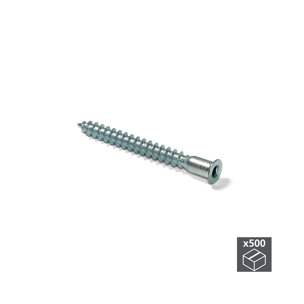 Lot de vis autotaraudeuses ou tire-fonds pour assemblage d’accessoires pour les meubles. Elles sont fabriquées en acier avec tête plate et empreinte Allen. Le montage requiert pré-perçage.