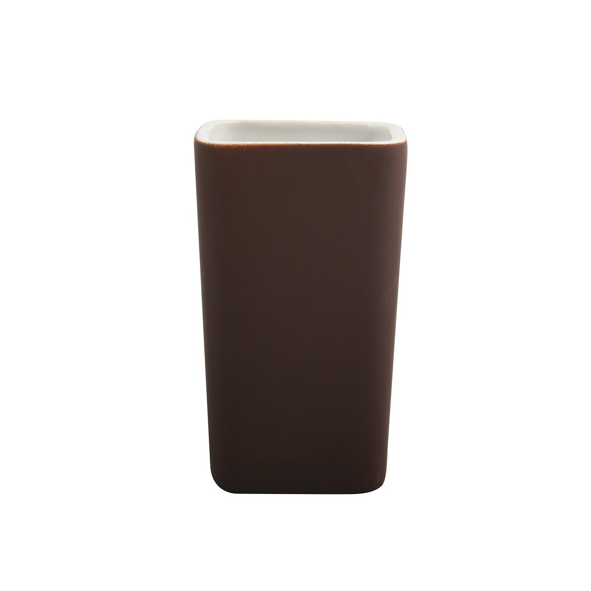 Gobelet design en grès cérame (céramique). Gamme Haïti. Avec recouvrement touché doux en gel de silice (toucher soft touch. Coloris : chocolat. Contenance : 250 ml. Dimensions : Diamètre 6,3 cm x Largeur 6,3 cm x Hauteur 10,5 cm.Spécifications techniques