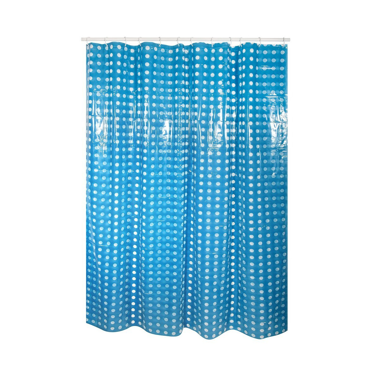 Rideau de douche en PVC. Coloris : bleu foncé à pois transparents. Dimensions : Largeur 180 cm x Hauteur 200 cm.Spécifications techniques