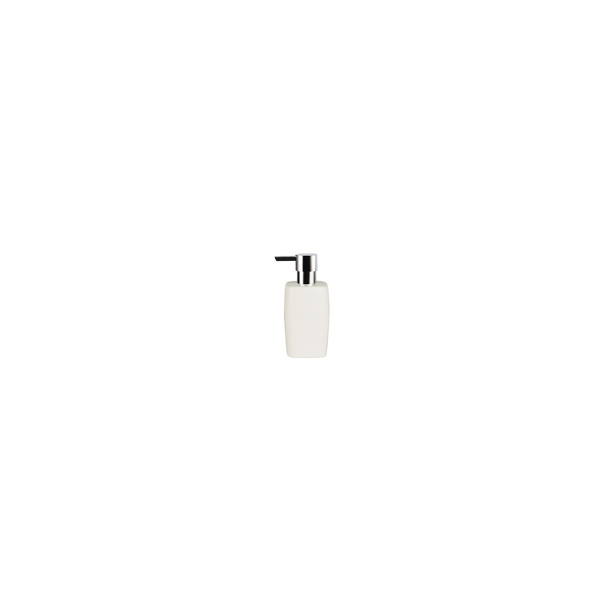 Distributeur de savon liquide Retro à poser en matière stoneware. Coloris blanc. Distribution du savon par appui sur la pompe. La pompe en matière plastique ABS finition chromée se dévisse pour permettre le remplissage. Contenance : 0,3L. Largeur 7cmxHauteur 15,5cm.Spécifications techniques
