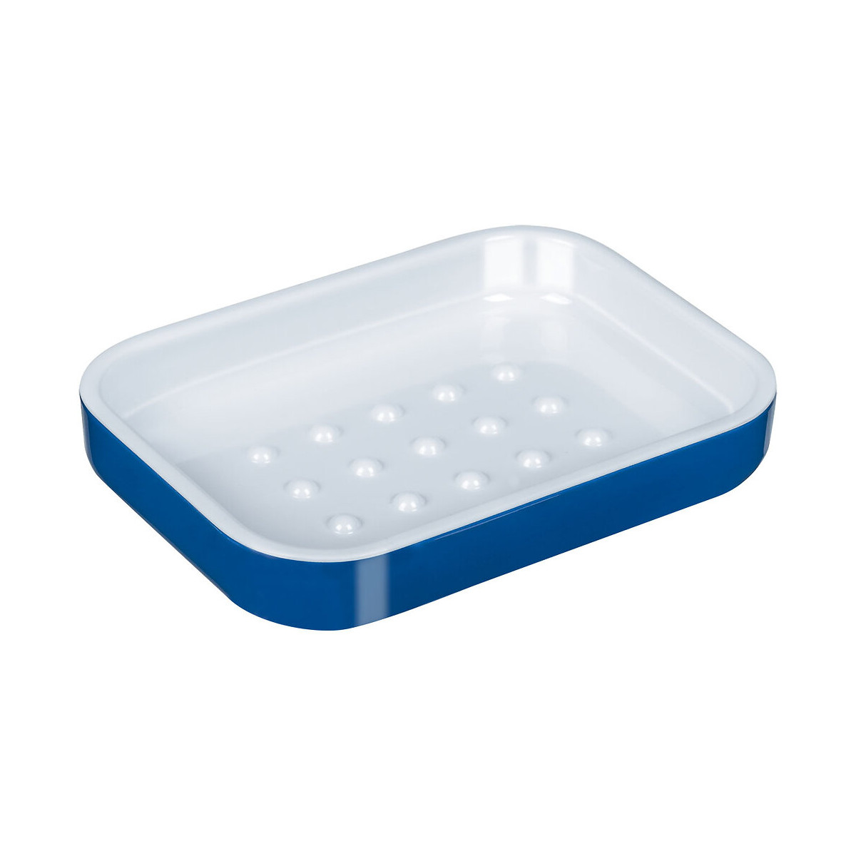 Porte-savon Yin en mélamine. Coloris : bleu à l'extérieur et blanc à l'intérieur. A coordonner avec le reste de la gamme Yin : distributeur de savon liquide, gobelet et pot à balai. Une touche contemporaine grâce à sa forme et à ses couleurs. Dimensions : Longueur 11 cm x Profondeur 8 cm x Hauteur 2 cm.Spécifications techniques