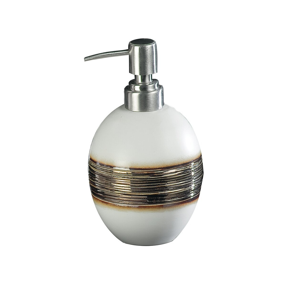 Distributeur de savon liquide Inca en céramique. Coloris : blanc. Décor bronze. Pompe en plastique. A coordonner avec le reste de la gamme Inca : porte-savon et gobelet. Dimensions : Largeur 8 cm x Profondeur 8 cm x Hauteur 17 cm.Spécifications techniques