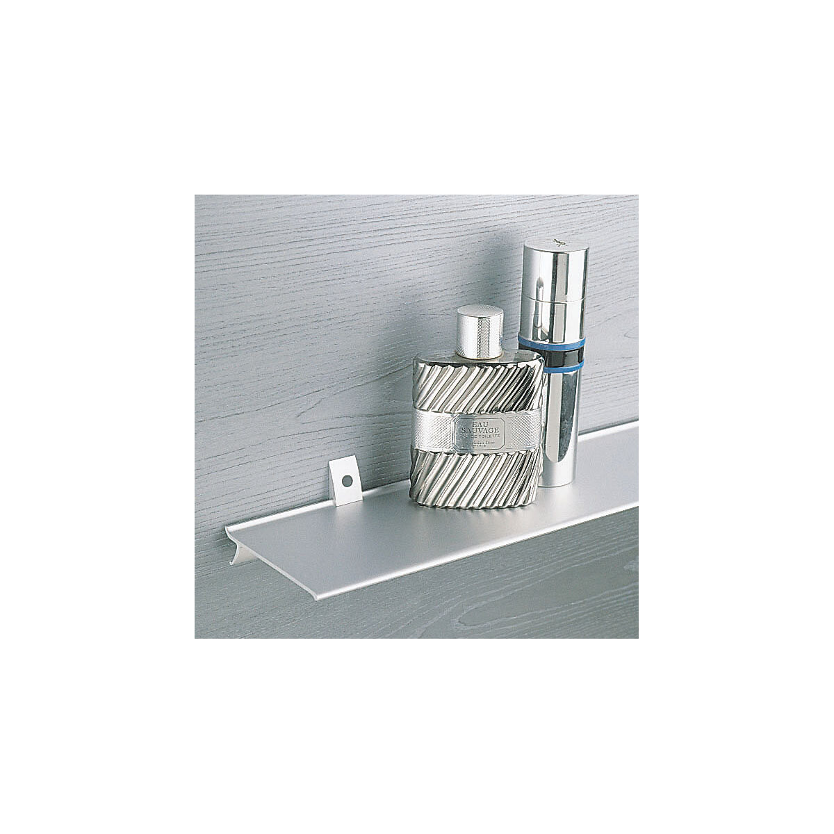 Tablette de salle de bain étagère Design en aluminium brossé. La série Design de seulement 6 références est à la fois moderne et élégante. À fixer. Kit de fixation fourni (vis + chevilles). Dimensions : Largeur 45,5 cm x Profondeur 14 cm x Hauteur 7,5 cm.