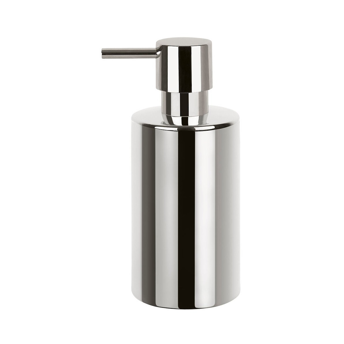 Distributeur de savon liquide Tube à poser en porcelaine. Coloris chromé. Distribution du savon par appui sur la pompe. La pompe en ABS coloris chromé se dévisse pour permettre le remplissage. Contenance 0.3L. Diamètre 7cm. Hauteur 16cm.Spécifications techniques