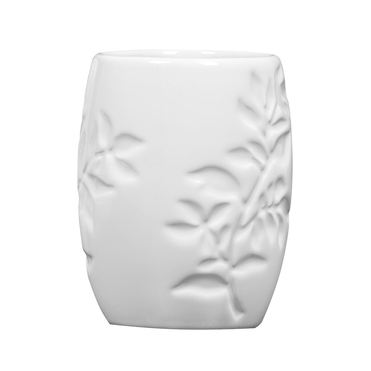 Gobelet Bouquet en céramique. Coloris : blanc. A coordonner avec le reste de la gamme Bouquet : porte-savon, distributeur de savon liquide et pot à balai. Dimensions : Diamètre 7 cm x Hauteur 10 cm.Spécifications techniques