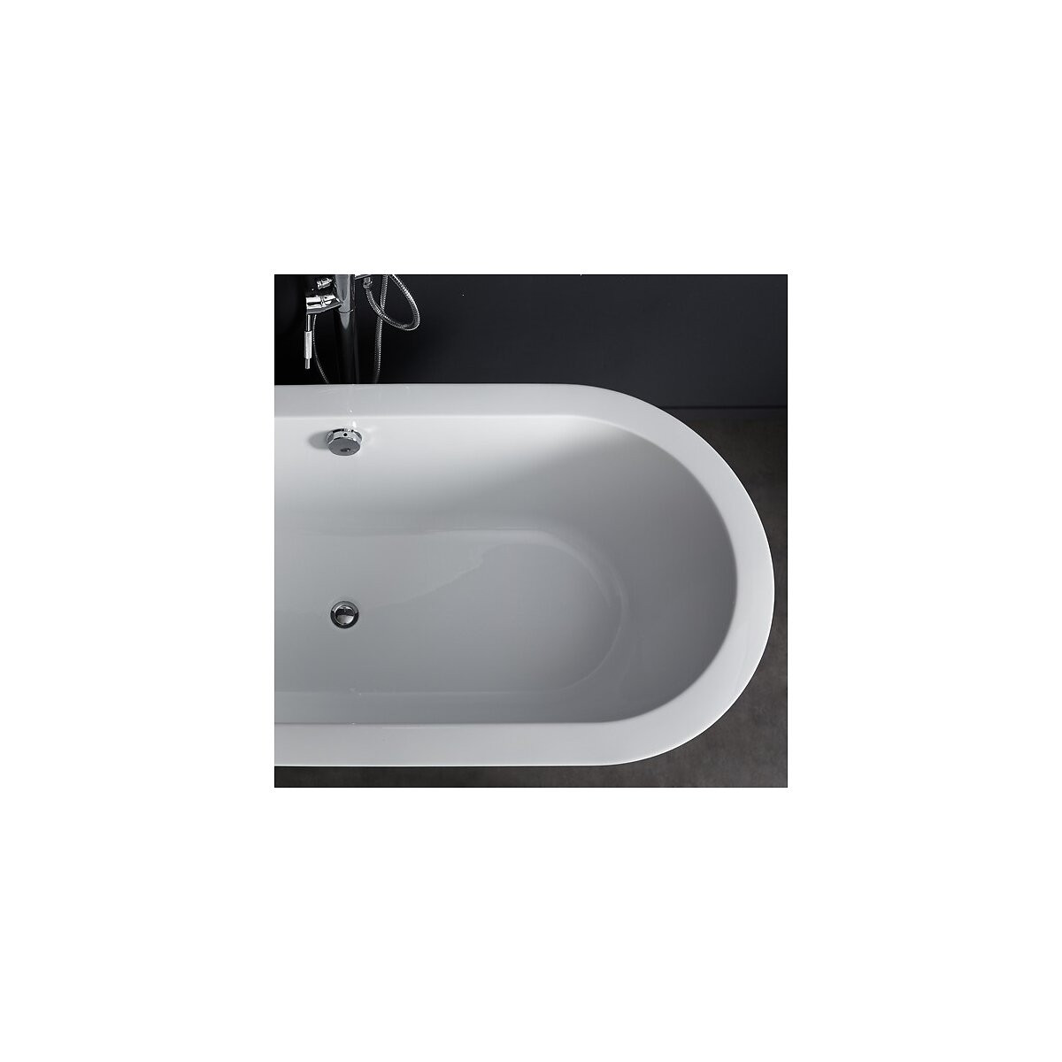 Baignoire îlot en acrylique double coque Avec trop plein Capacité 200 L Emplacement du vidage : central Diamètre de la bonde : 55 mm Dimension de la baignoire : 80*170*58 cm Livrée avec bonde et trop plein Siphon non fourni, attention il faut un siphon extra plat