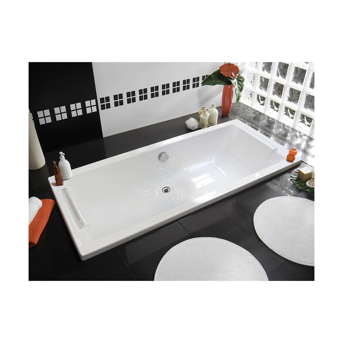 La baignoire rectangulaire SQUARE apporte une touche contemporaine à votre salle de bain grâce à ses lignes droites et épurées. Le vidage est centré sur la longueur pour vous permettre de vous allonger de chaque côté. Fabriquée en Toplax, ce matériau breveté et développé par la marque Allibert est sans fibre de verre et composée à plus de 60% de matières recyclées pour un meilleur respect de l’environnement. Caractéristiques de la baignoire Square : Matériau écologique composé d’acrylique coulé avec renfort ABS Fabrication Française Garantie 10 ans Excellente résistance aux chocs et produits d’entretien Norme NF Vidage centré sur la longueur Bonde de vidage non fournie Livrée avec pieds Profondeur 40 cm Type de pose : sur pied, à poser ou à encastrer La baignoire Square est disponible en 2 dimensions : 170 x 75 cm 180 x 80 cmSpécifications techniques