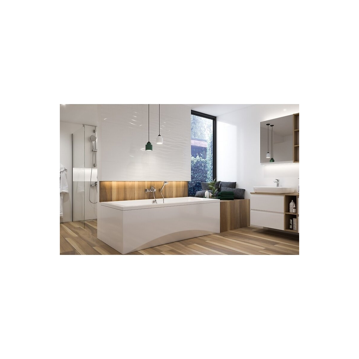 Les plus : + Baignoire spacieuse et confortable. + Doublement renforcée, la paroi en acrylique recouvre une seconde couche faite de résine et de fibre de verre. Ce double renforcement permet un confort et une sécurité maximale. + Design contemporain TABLIER CENTRAL FOURNI. Caractéristiques techniques : Modèle : Baignoire rectangulaire ENCASTRABLE 150X75. Gamme : CERSANIT. Couleur : Blanc. Matériaux : Acrylique sanitaire. Tablier : Tablier central fourni - Joues non fournies. Pieds ajustables fournis. Pas de montage de robinetterie sur plage. Siphon : Ø 52 mm non livré. Vidage central du côté long Dimensions : H42 x L150 x L75 cm. Capacité : 190 Litres. Fabriquée en Europe Ce produit ne provoque pas de réaction allergique (recommandé par la Société Polonaise d'Allergologie).