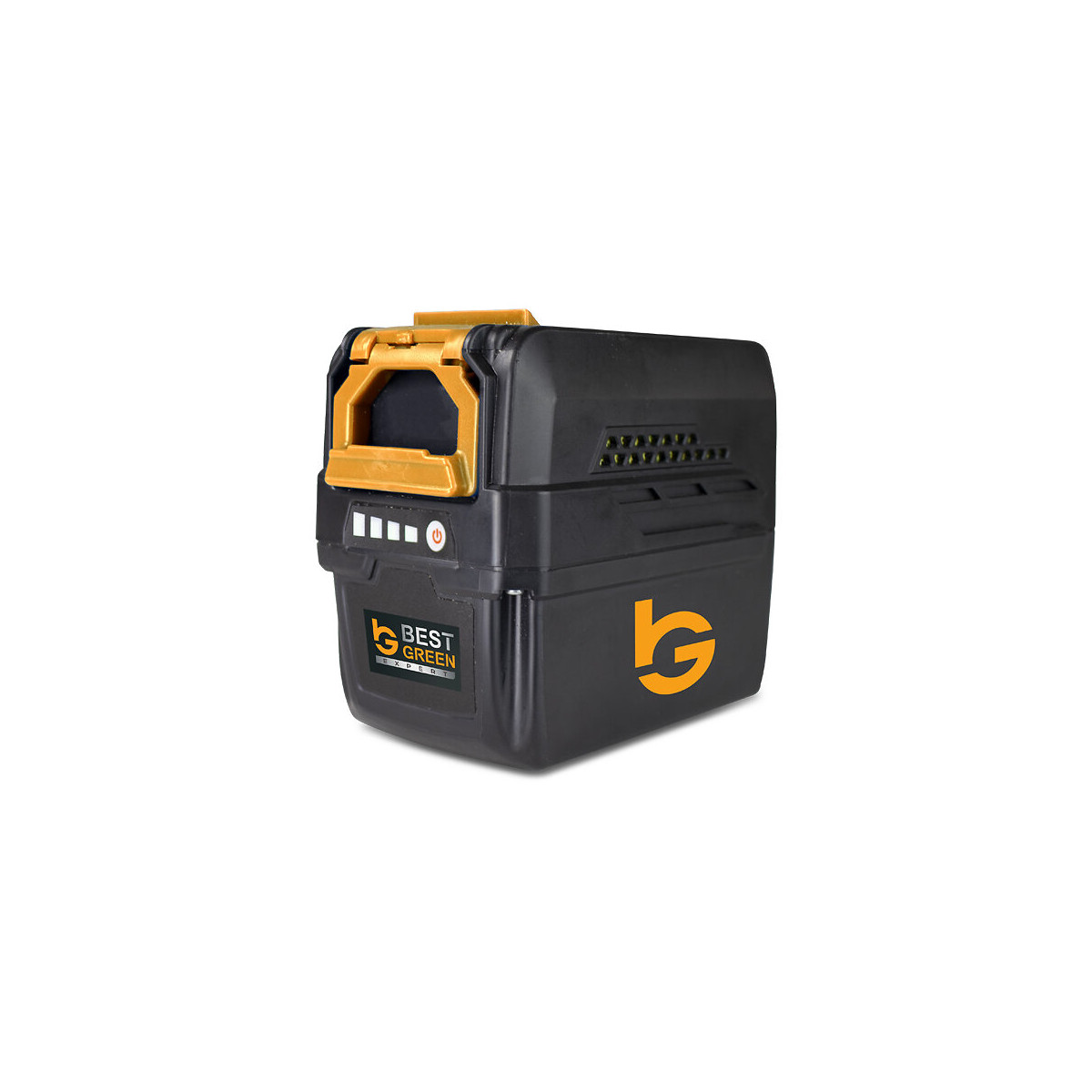 Tension nominale : 40 V Batterie Lithium : 5 Ah Aucun effet mémoire, aucune perte de charge pour un rendement énergétique optimal ! Les batteries lithium 40 Volts 5 Ampères ,de haute performance alimentent la gamme d'outils de jardin 40V Bestgreen suivants : BGTDEN4640VT tondeuses sans fil , coupe-bordure sans fil BGCBEN40V et débroussailleuse sans fil BGDBDN40V taille-haies sans fil BGTHEN40V, tronçonneuse sans fil BGTREN40V élagueuse sans fil BGELPN40V et souffleur sans fil BGSEN40V La batterie Bestgreen 5Ah est une batterie li-Ion. , Son autonomie et son nombre de cycles de recharge varient ,en fonction de l'usage de l'outil Plus légères que les batteries au plomb, la batterie li ion BESTGREEN est performante, compacte et robuste. , Elle offre en plus un nombre de cycles, un temps d'utilisation et une densité énergétique élevés. Avec un cycle de charge de la batterie complète, vous menez confortablement vos travaux de jardinage. , Elles sont rapidement rechargeables et ne possèdent pas d'effet mémoire. , Vous pouvez recharger votre batterie à n'importe quel moment sans vous préoccuper de la capacité de charge restante. , Les batteries Lithium BESTGREEN sont rechargeables sur les chargeurs BESTGREEN La présence d'un témoin de charge ,vous indique quand le cycle de charge est complet.