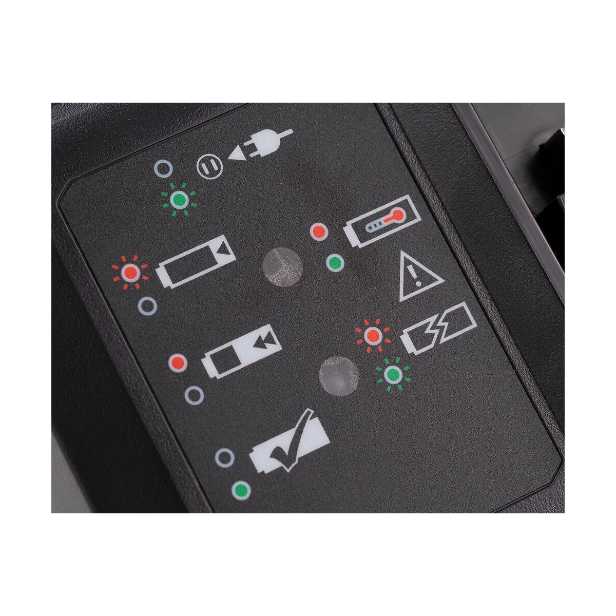 Alimentation 200-250V / 50-60 Hz. , Tension de sortie 21V. , Temps de charge 40 min (batterie 2,0 Ah) / 80 min (batterie 4,0 Ah et 5,2 Ah). , Témoin du niveau de charge à 6 positions. , Système de charge intelligent pour une longue durée de vie de la batterie. , Le niveau de charge détecté en permanence détermine et actionne le rechargement de la batterie. , La recharge après décharge totale est progressive, pour une longue durée de vie. ,