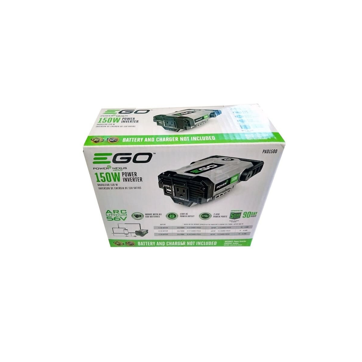 Equipé d'une prise de courant 230 V et 2 ports USB qui vous permet de brancher des équipements essentiels si vous travaillez à distance, ou des téléphones portables, des montres connectées ou des appareils photo numériques pour n'en citer que quelques-uns. Alimente des lumières ou des appareils électriques jusqu'à 150W : 10h d'alimentation d'une TV 42" ou l'équivalent de 27 recharges de smartphone par ex. Couplez l'onduleur portatif Nexus Escape avec n'importe quelle batterie au lithium à arc EGO Power+ pour vous délivrer l'électricité dont vous avez besoin. Livré sans batterie ni chargeur. Garantie 3 ans. Batterie lithium 56V EGOPOWER compatibles avec le convertisseur Nexus PAD1500E : Batterie 2,5Ah 56 volts BA1400T Batterie 4Ah 56 volts BA2240E Batterie 5Ah 56 volts BA2800T Batterie 7,5Ah 56 volts BA4200T Batterie 2,5Ah 56 volts BA5600T et les chargeurs 56 volts CH2100E ou rapide CH5500E Informations SAV: Service Après Vente assuré par une Equipe interne à la société Tondeuse-et-compagnie dûment formée et agréée par le fabricant à l'intervention sur les produits de la marque. Montage: Notice de montage et d'assemblage disponible en langue française réalisée par notre équipe technique Informations complémentaires: 1 prise 220V et 2 ports USB Alimentation: Electrique avec batterie Puissance en watt: 150 W Couleur: Gris Garantie: 3 ans Poids à vide (Kg): 0,7 Kg