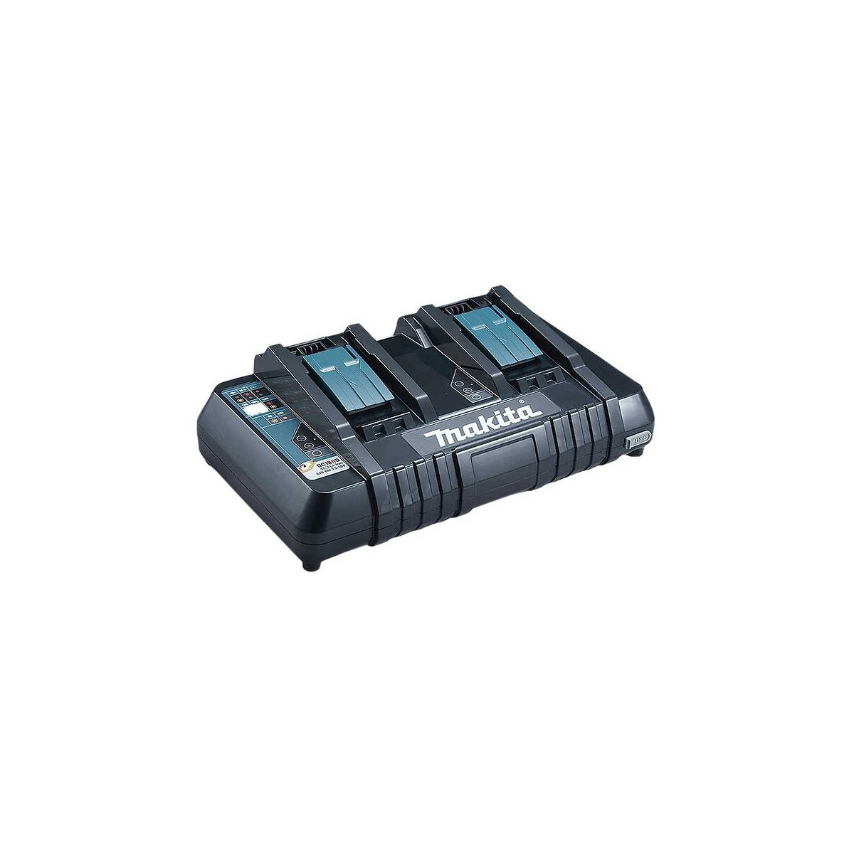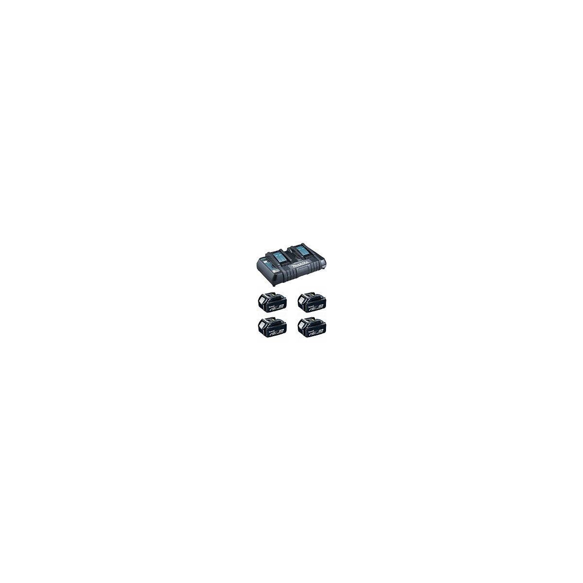 Power Set MAKITA (4 x 5,0 Ah + DC18RD) Batteries MAKITA BL1850 - Batterie avec technologie Li-Ion LXT - Charge rapide avec refroidissement par ventilateur : la conception intérieure de la batterie permet un flux d'air uniforme permettant ainsi un refroidissement rapide de chacune des cellules de la batterie - Système de charge intelligent : charge rapide et optimale, ce qui prolongera la durée de vie de la batterie - 40% plus légère, sans effet mémoire, faible décharge et absorption des chocs - Compatible avec toutes les machines Makita 18V Chargeur Double MAKITA DC18RD - Le Chargeur rapide Double communique avec la puce intégrée de la batterie tout au long du processus de charge pour optimiser la durée de vie de la batterie et contrôle activement le courant, la tension et la température - Chargeur avec ventilateur de refroidissement : sa conception permet à l'air de circuler efficacement pendant la charge, empêchant la surchauffe et prolongeant ainsi la durée de vie de la batterie - Port USB intégré pour charger les appareils électroniques portables