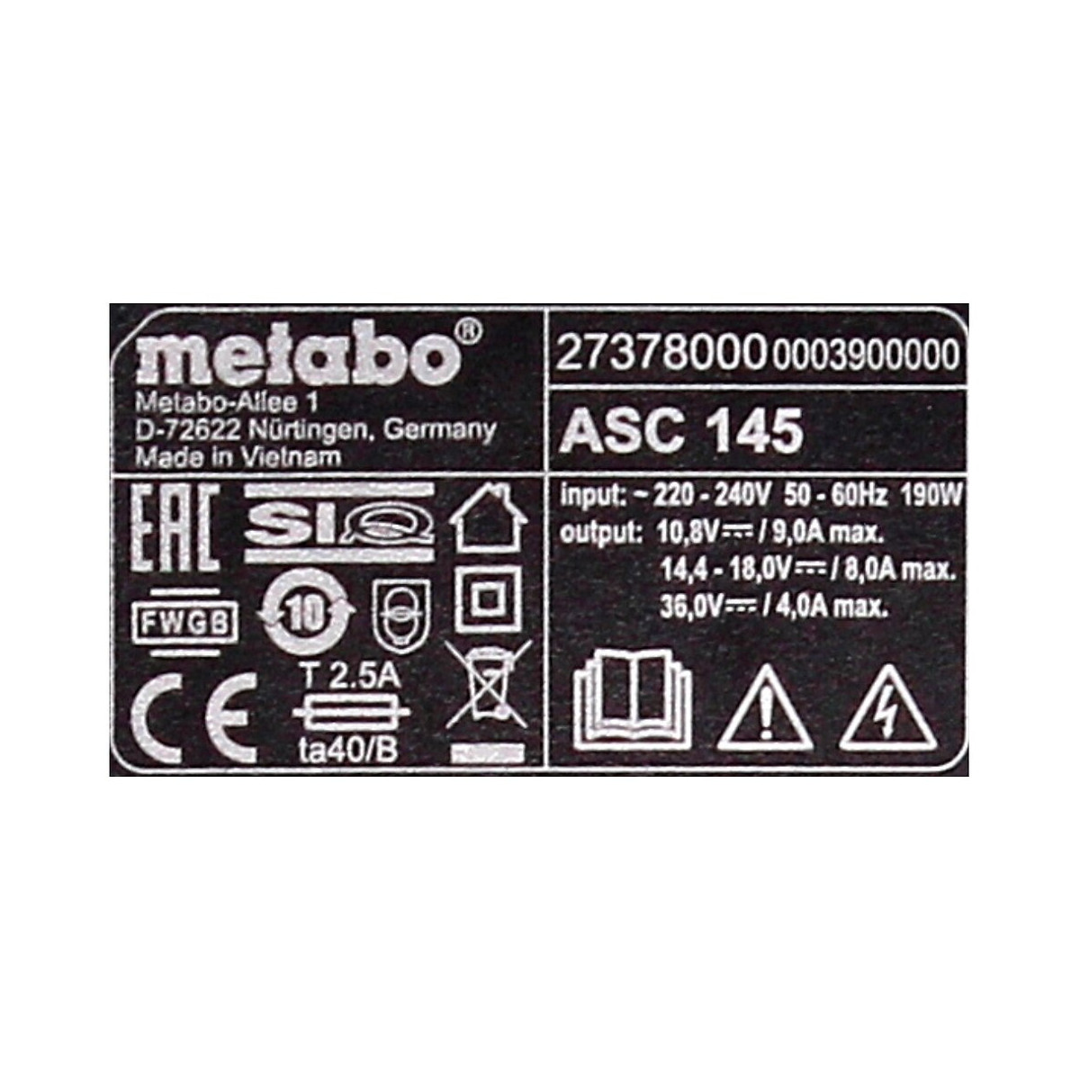 Power Set METABO (2 x 18V 5,5 Ah LiHD + ASC 145) Batteries METABO 18V 5,5 Ah LiHD - Batterie LiHD pour une puissance ultime et une durée de fonctionnement maximale avec un dégagement minimal de chaleur - Technologie Ultra-M : une gestion intelligente des batteries pour des batteries durables, garanties 3 ans - Technologie de chargement brevetée "AIR COOLED" - Surveillance électronique individuelle des cellules (ESCP) permanente lors du chargement, pour une durée de vie particulièrement longue - Gestion de chargement et de déchargement contrôlée électroniquement - Indicateur de capacité pour un contrôle permanent du niveau de charge - Possibilité de stockage prolongé n'occasionnant pratiquement aucune décharge - 100 % de compatibilité avec toutes les machines 18 V et les chargeurs du système CAS Chargeur METABO ASC145 - Pour la recharge de toutes les batteries à logement coulissant Li-Ion et LiHD (12 V - 36 V) avec un courant de recharge de batterie adapté - Technologie de recharge << AIR COOLED >> brevetée : refroidissement de la batterie lors de la recharge pour une recharge nettement plus rapide - Très faible puissance absorbée en veille - Gestion de la recharge commandée par processeur pour une recharge qui préserve la batterie et un nombre maximal de cycles de recharge - Compatible avec toutes les batteries du système CAS