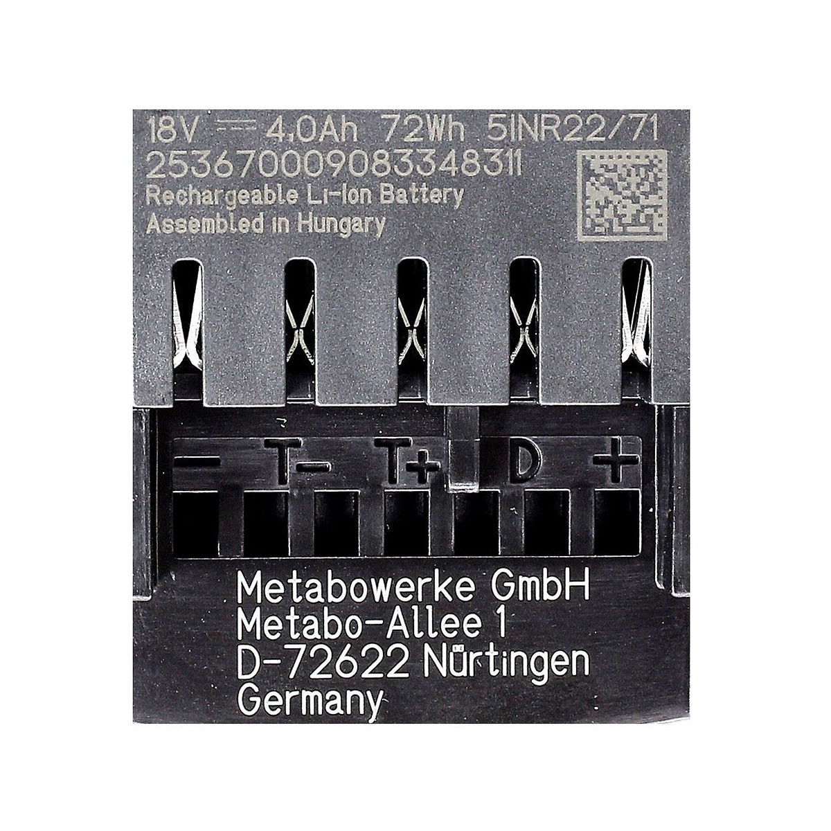 Contenu de la livraison: - 2x Batteries Metabo LiHD 4,0 Ah (625367000) Description du produit: Grâce à la nouvelle technologie LiHD, Metabo est le seul fabricant au monde à couvrir toute la plage de puissance, de 400 à 3200 watts. Les applications qui étaient auparavant réservées uniquement aux machines réseau les plus puissantes sont désormais possibles sans fil. Les batteries de 4,0 Ah sont parfaites pour tous les forets, clés à chocs et marteaux rotatifs. Ce sont les seules batteries de 4,0 Ah avec une rangée de cellules et donc beaucoup plus plates que les autres batteries Li-Ion de 4,0 Ah, 100 grammes plus légères avec une ergonomie améliorée et encore plus de puissance. La combinaison de nouvelles cellules hautes performances et de composants entièrement nouveaux des batteries LiHD garantit des performances ultimes et une utilisation extrêmement longue avec un développement de température minimal. L'interaction de nombreuses technologies, telles que La gestion intelligente des batteries et la surveillance électronique permanente à cellule unique garantissent aux batteries une durée de vie particulièrement longue. L'affichage de capacité intégré permet une vérification permanente du niveau de remplissage. La protection optimale contre la pollution interne, le revêtement de protection complet de l'électronique ainsi que l'étanchéité optimale dans la construction du couvercle garantissent une longue durée de vie sans presque auto-décharge. La doublure extérieure en caoutchouc des batteries assure un support sûr et antidérapant et sert également de protection contre les chocs. Compatibilité à 100% avec toutes les machines 18 V et chargeurs des partenaires CAS (Cordless Alliance System): Rothenberger, Edding, Fischer, Mafell, Collomix, Eibenstock, Eisenblättert, Haaga, Starmix, Steine, Rokamat, Birchmeier. Cette compatibilité fait de la batterie une batterie pour tout. Spécifications techniques: Tension: 18 V Capacité de la batterie: 4,0 Ah Compatibilité: partenaire CAS (Cordless Alliance System) Constructeur: 625367000