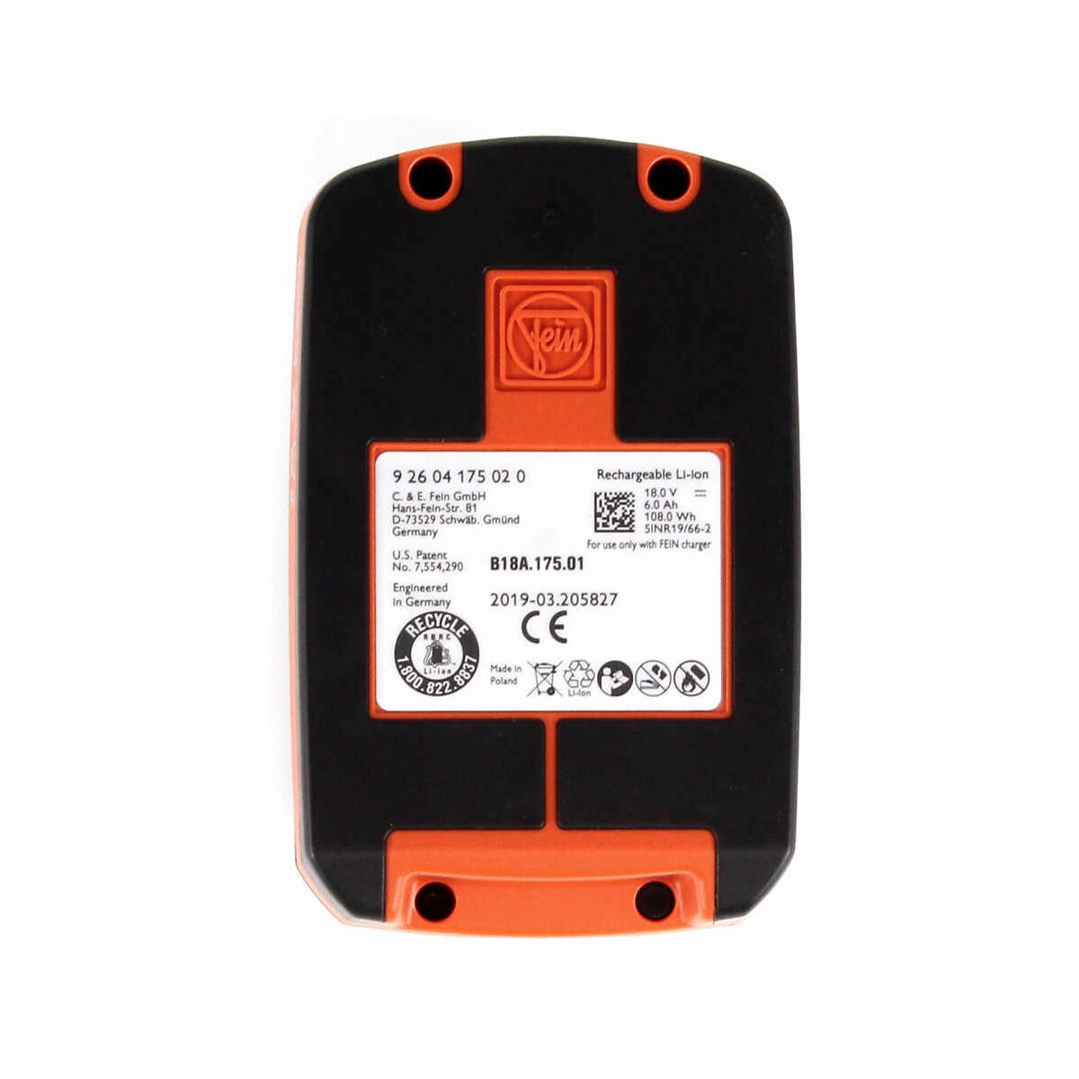 Contenu du paquet: - 1x Batterie FEIN 18 V 6,0 Ah Li-Ion ( 92604175020 ) avec affichage LED Description du produit: La batterie rechargeable 18 V 6,0 Ah de la maison FEIN convainc par sa compacité et ses performances. Les batteries Li-Ion garantissent une durée de vie plus longue et des temps de charge courts. La technologie SafetyCell de FEIN protège la batterie et la machine contre la surcharge, la surchauffe et la décharge profonde. Cette batterie de 6,0 Ah est compatible tous les outils FEIN 18 V. Spécifications techniques: Tension : 18 V Capacité : 6 Ah Type de cellule : lithium-ions