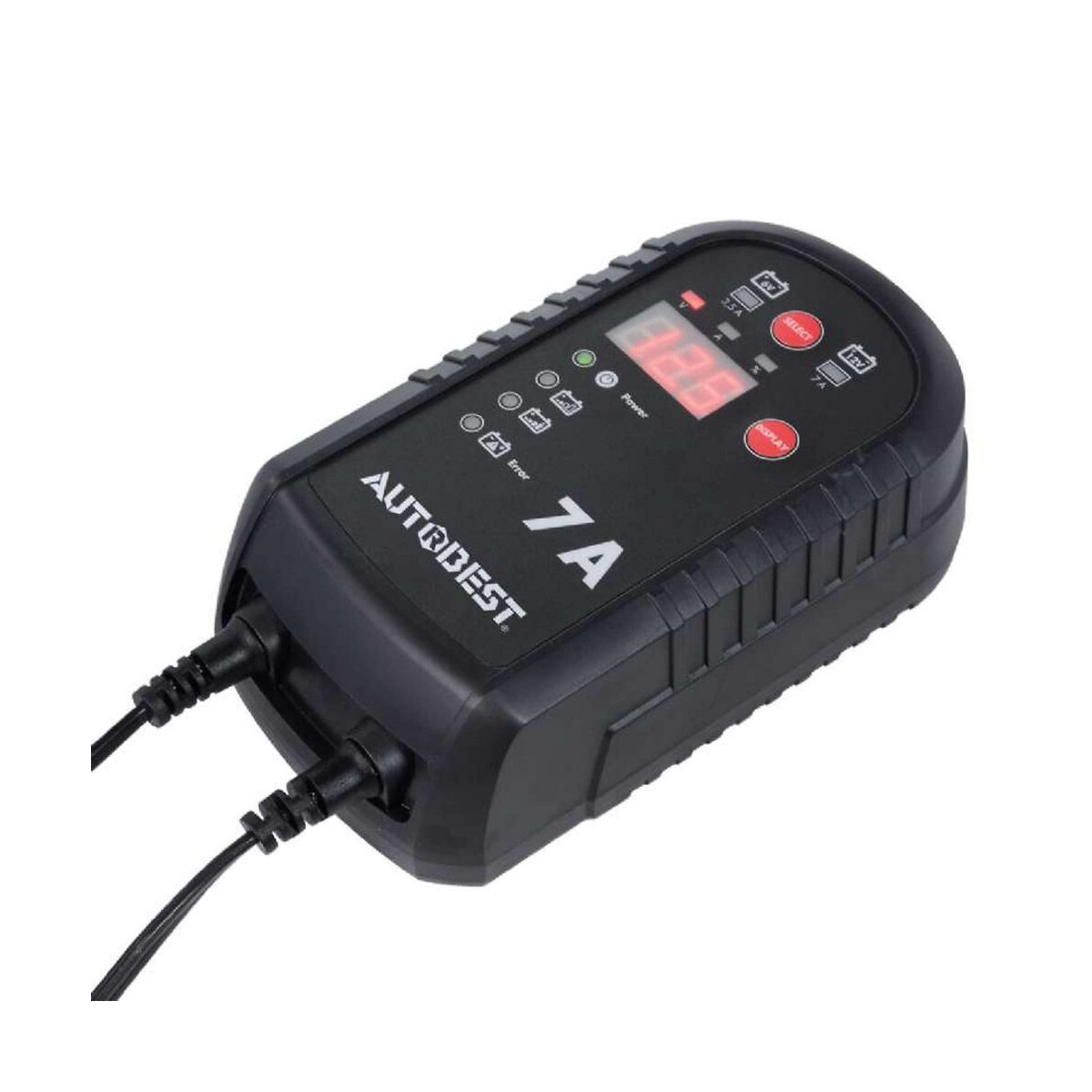Description détaillée du produit: - produit: chargeur de batterie - marque: Autobest - univers: auto moto - utilisation: entretien et charge de batterie de voiture, moto - utilisation: pour batterie de 6 V et 12 V - intensité: 7 A - courant de charge: jusqu'à 70 Ah pour les batterie 6 V - courant de charge: jusqu'à 150 Ah pour les batterie 12 V - protection électrique: classe IP65 - caractéristique: chargeur à microprocesseur - caractéristique: système intelligent - caractéristique: 8 niveaux de charge automatiques - caractéristique: fonction de récupération - caractéristique: fonction diagnostic - sécurité: protection contre les inversions de polarité - sécurité: protection contre les court-circuit