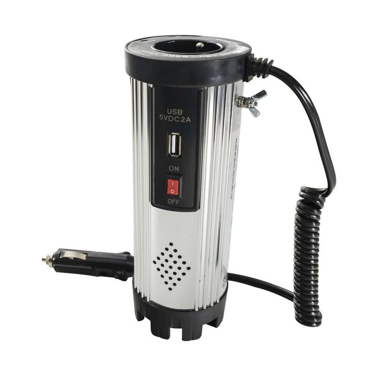 Description - Convertisseur de courant pour véhicule - Dispose d'un port USB de 5 V - Dispose d'une prise 220 V - Se branche sur une prise allume cigare de 12 V - Tension d'entrée: 12 V DC - Tension de sortie: 220 - 230 V AC - Puissance continue: 150 W - Puissance de pointe: 300 W - Plage de tension d'entrée 11 - 15 V DC - Efficacité énergétique: > 85 % - Fréquence: 50 Hz - Consommation sans charge: - Sortie port USB: 5 V DC 2.1 A