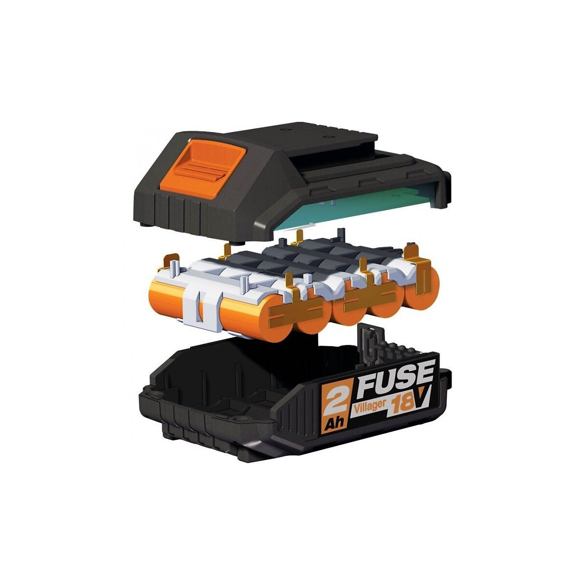 Batterie 2 ampères heure compatibles avec tous les outils motorisés de la gamme Fuse Villager 18 V. Technologie Avancée Lithium. Durée de vie 3 fois plus importante qu'une batterie NI Cd. Temps de charge de 45mn avec le chargeur rapide Fuse CH-2.4-Fuse et 90mn avec le chargeur Standard CH-1.65-Fuse. Une gamme complète Fuse s'adapte avec cette batterie lithium 2 Ah. Cette batterie très puissante et avec une capacité de stockage élevée convient parfaitement aux outils à batterie nécessitant beaucoup de puissance comme un souffleur à feuille, une tronçonneuse électrique, une meuleuse... Avec la nouvelle technologie Lithium LI-Ion la durée de vie de la batterie est trois fois supérieure aux batterie Ni-Cd équivalentes. Comme la batterie Fuse 2 Ah, elle est facile à utiliser et compacte. Des leds vous permettrons de surveiller sa charge et de la remettre en charge au moment opportun. Avec un chargeur Fuse de 2,4 Ah, il faudra compter 90 mn de temps de charge et 60 mn avec le chargeur rapide 4 Ah. Cette nouvelle génération d'outils à batterie a besoin de performance durable sur le cycle de vie du produit. En effet, vous pourrez charger cette batterie autant de fois que vous le désirez et sa performance sera toujours maintenue. Lors du stockage, il est conseillé de la protéger des fuites de liquide éventuelles, de la conserver dans un endroit à 5°C et avec une charge à 80%. A la différence de nombreuses batteries, La Fuse 4Ah accepte d'être totalement déchargée et rechargée sur toute sa durée de vie. Informations SAV: Service Après Vente assuré par une Equipe interne à la société Tondeuse-et-compagnie dûment formée et agréée par le fabricant à l'intervention sur les produits de la marque. Type de moteur: Electrique Moteur: Batterie Lithium ion Tension: 18 V Fonction: Batterie Temps de charge: 45 mn à 1h30 Intensité: 2 Ah Couleur: Orange Durée de garantie: 2 ans Poids à vide (Kg): 1 Kg Dimension emballage: 46 x 25,6 x 15,2 cm