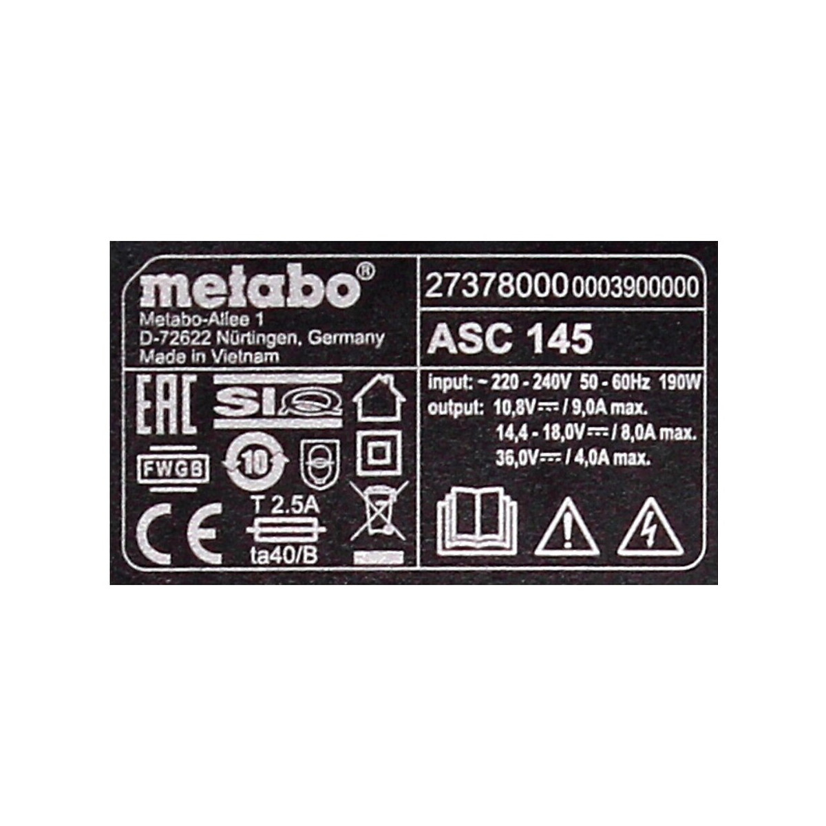 Pack Energie METABO 2 Batterie 5,5 Ah LiHD + Chargeur ASC 145 + Coffret metaBOX 2 x batteries LiHD 18 V/5,5 Ah Type de batterie LiHD Tension de la batterie 18 V Capacité de la batterie 2 x 5.5 Ah Chargeur rapide ASC 145 Metaloc II