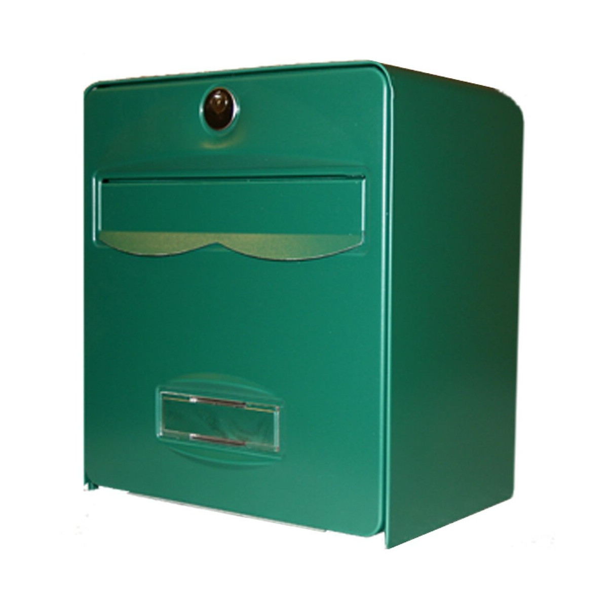 Mini boîte aux lettres en acier galvanisé laqué vert, 310Hx280Lx150P mm, équipée d'un barillet agréé PTT, Porte à ouverture verticale totale pour un volume intérieur optimisé, 1 porte, garantie 6 ans contre la corrosion, excellente résistance aux intempéries, faible encombrement, profondeur réduite, porte bloquée à 120°. pas de trace d'assemblage, livrée avec 2 clés, fabriquée en FranceSpécifications techniques