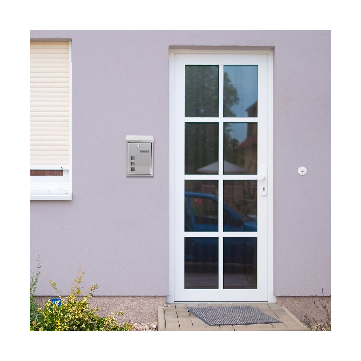 Qu'est-ce qui sera accroché sur la façade de votre maison à l'avenir? Une nouvelle boîte aux lettres appelée Casa Inox, fabriquée en acier inoxydable de haute qualité et équipée d'une plaque signalétique et d'une fenêtre de visualisation. Son rabat a une petite languette d'égouttement pour que le courrier reste propre et sec. Tous les critères importants sont remplis et la boîte aux lettres impressionne également par son aspect intemporel. Produit fabriqué en acier inoxydable de haute qualité Serrure à cylindre, 2 clés La charnière de la porte est en bas Étiquette de nom Fenêtre de visualisation matériel approprié pour l'assemblage incl. adapté au montage mural Matériel de montage inclusSpécifications techniques
