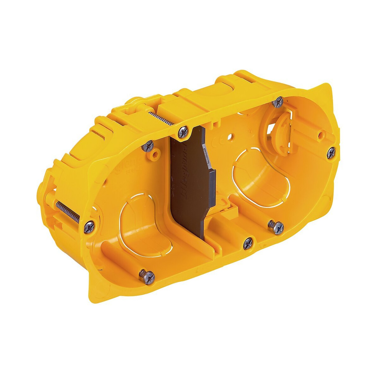 Boîte à encastrer Batibox plaque de plâtre - 2 postes profondeur 40mm. Boîte à encastrer dans les plaques de plâtre, de contreplaqué, de bois, de tôle.Spécifications techniques