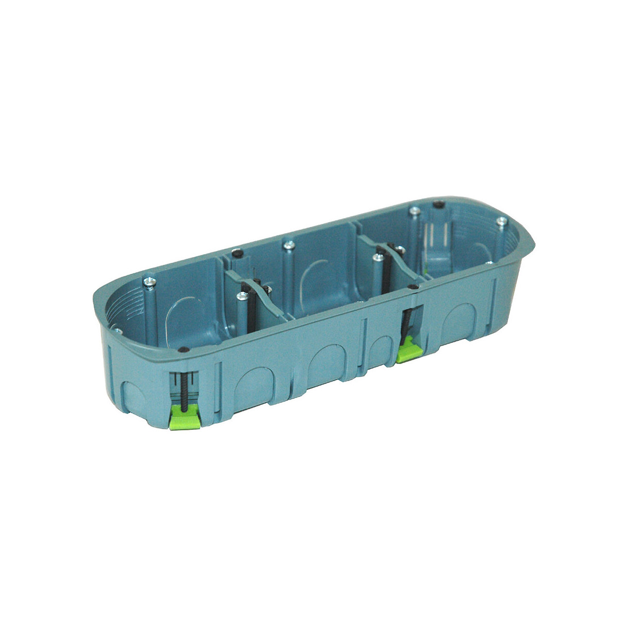 Boite d'encastrement 3 postes entraxe 71 mm pour appareillage multi-matériaux. Diamètre : 67 mm. Profondeur : 40 mm.Spécifications techniques
