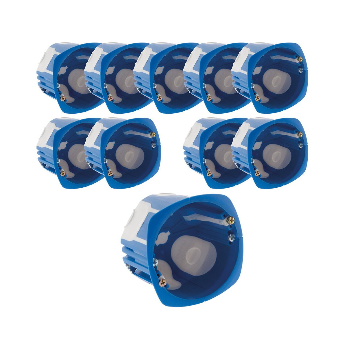 Boîte d'encastrement multimatériau pour cloison sèche ou murs pleins No Air. Hermétique à l'air pour vos travaux d'installation électrique aux normes BBC / RT2012. Conforme à la norme NF. Haute résistance au feu 850°. Diamètre de 67mm et profondeur 50mm. Livré avec vis.