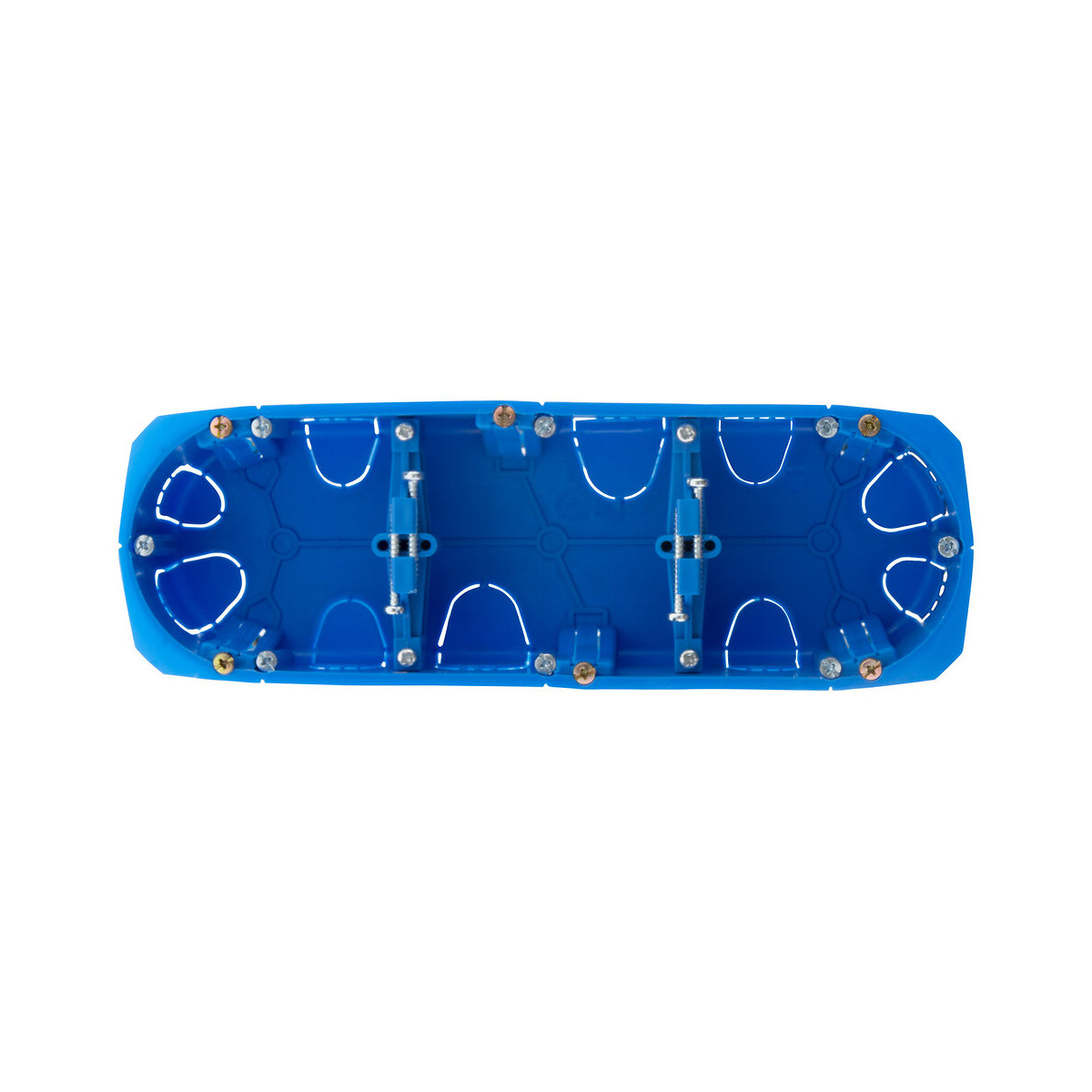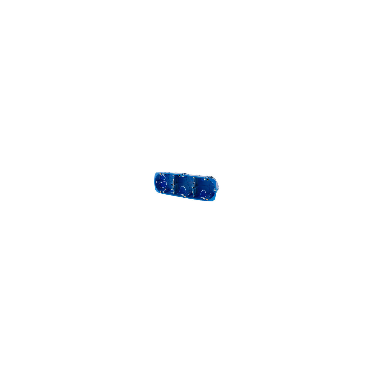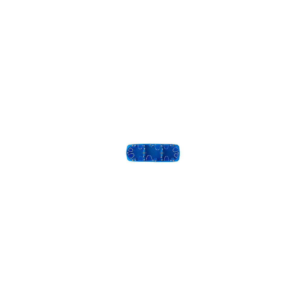 Boîte d'encastrement triple multimatériau pour cloison sèche ou murs pleins. Conforme à la norme NF. Haute résistance au feu 850°. Diamètre de 67mm et profondeur 40mm. Entraxe 71mm. Livré avec vis et patte métal.