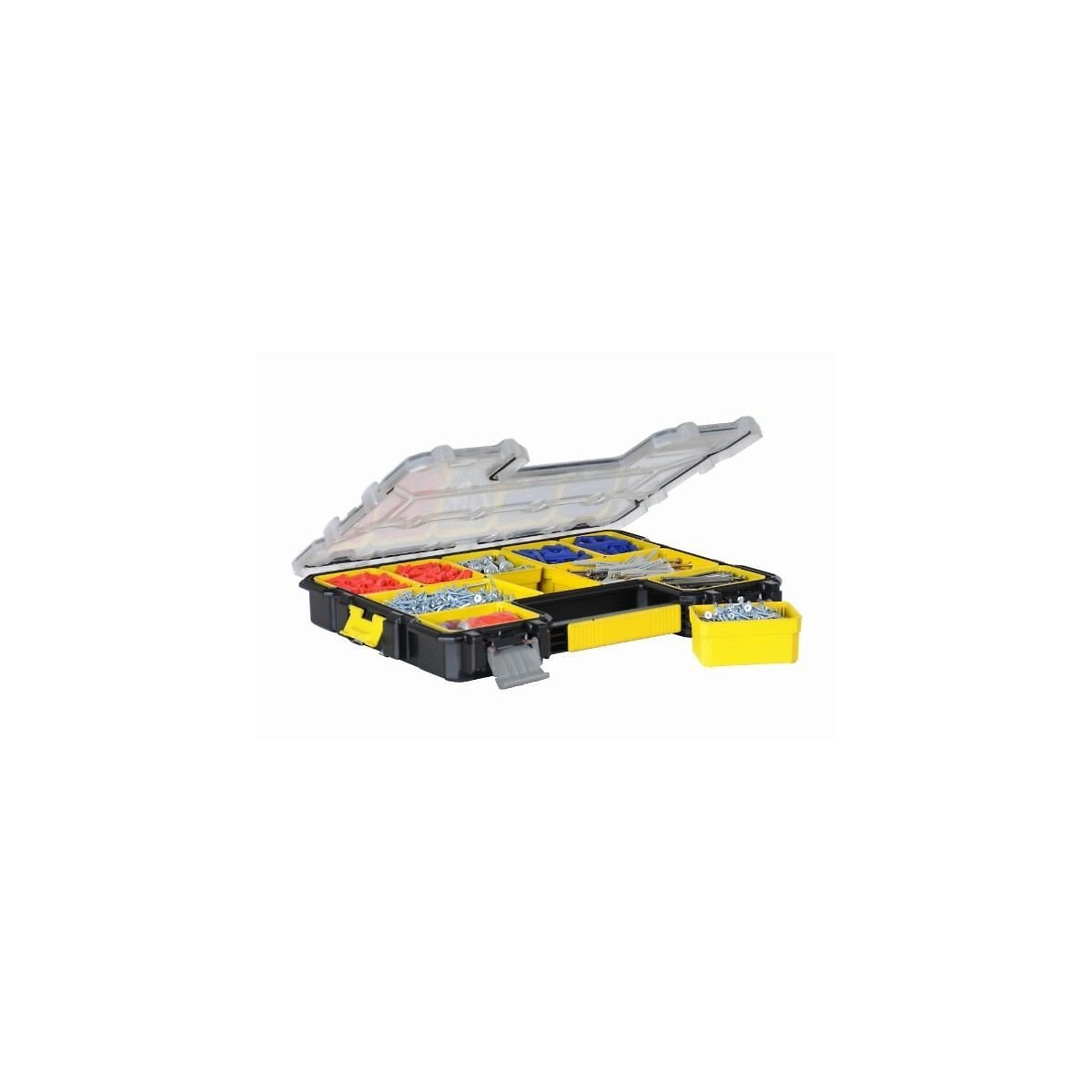 Cet organiseur est idéal pour le stockage et le transport de petites pièces grâce à ses compartiments amovibles peu profond et ses larges fermoirs plastiques à encoche pour le maintien des compartiments. Pour un aperçu rapide des outils, le solide couvercle polycarbonateest transparent. Cet organiseur bénéficie d'attaches latérales pour pouvoir l'assembler à des produits similaires et l'ajuster à sa guise.