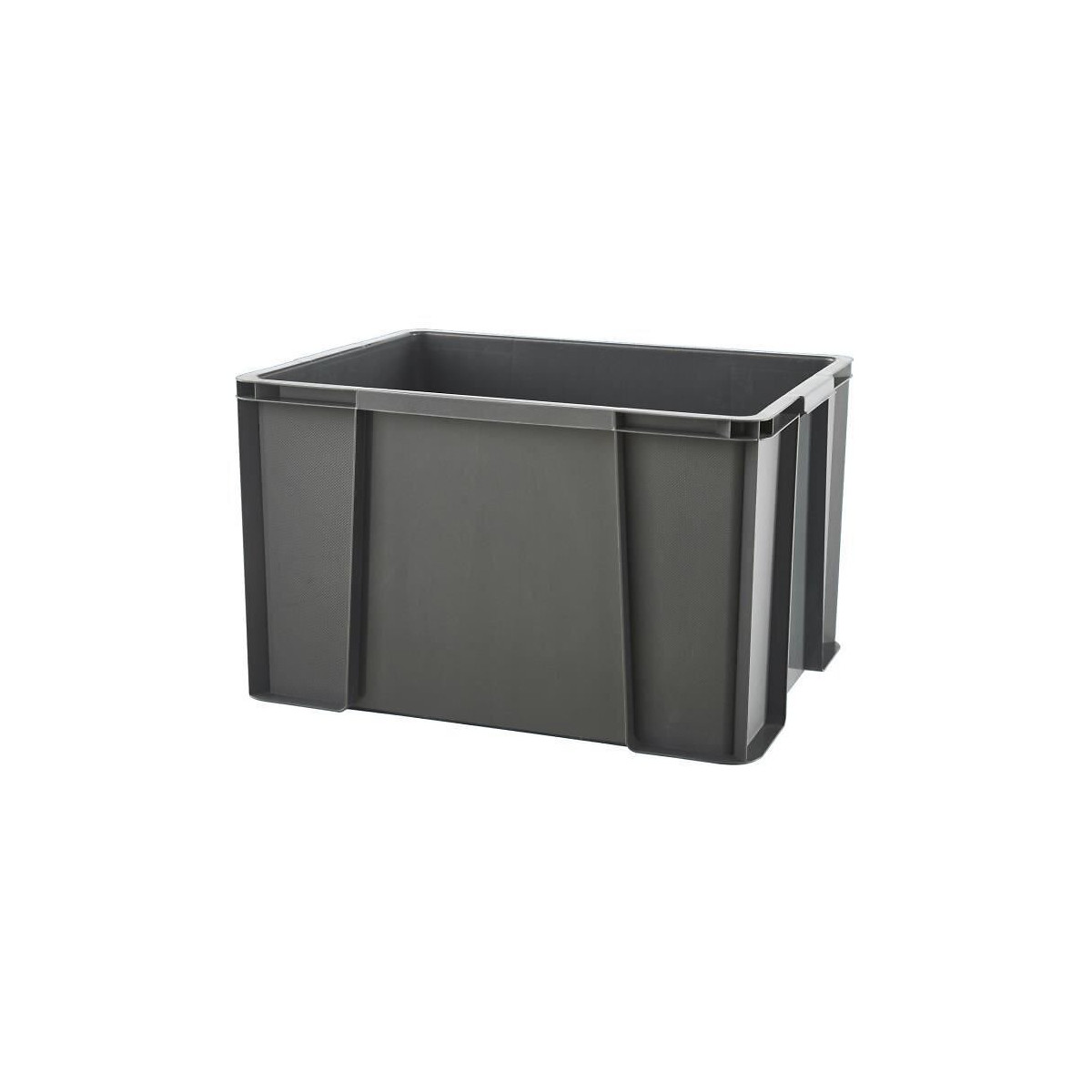 Bac boîte de rangement en polypropylene de coloris anthracite. Renforts latéraux et inférieurs pour une grande robustesse. 2 poignées. 2 zones de préhension latérales. Apte au contact alimentaire. Dimensions : 50x38,5x30,5 cm. Contenance : 45 L.