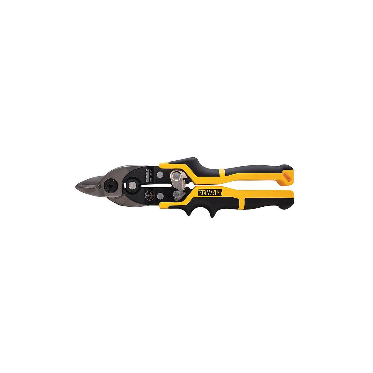 Ciseaux à tôle coupe droit DeWALT DWHT14694-0 - Construction en acier au chrome-vanadium forgé pour une durabilité et une résistance à la corrosion - Lame dentelée qui empêche le matériau de glisser et offre une finition de coupe nette - Conception améliorée des boulons externes pour une utilisation facile d'une seule main