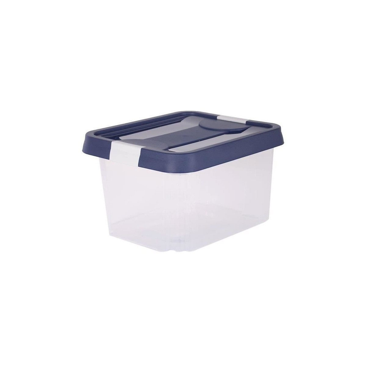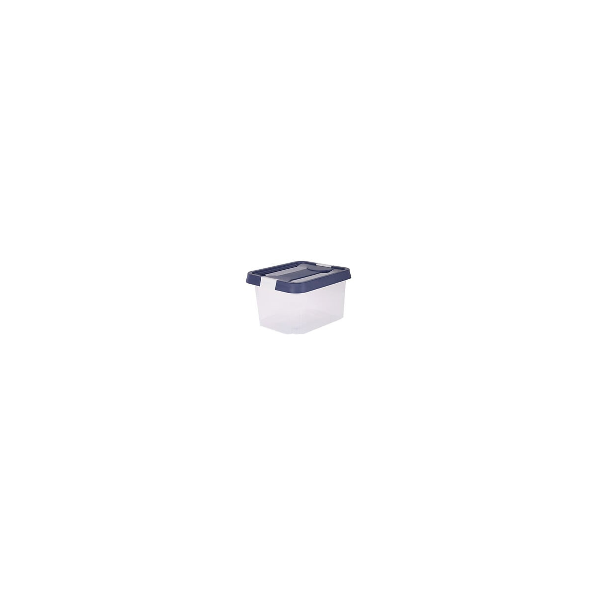 EDA PLASTIQUE Boîte de rangement Clippy 30 L - Naturel avec couvercle bleu et poignées blanc cérusé - 45,3 x 37,4 x 26,4 cm