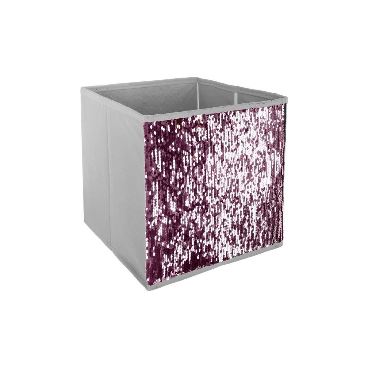 Bac de rangement Sequin - Polypropylene et carton - L. 24 x P. 24 x H. 23 cm - Argent et rose