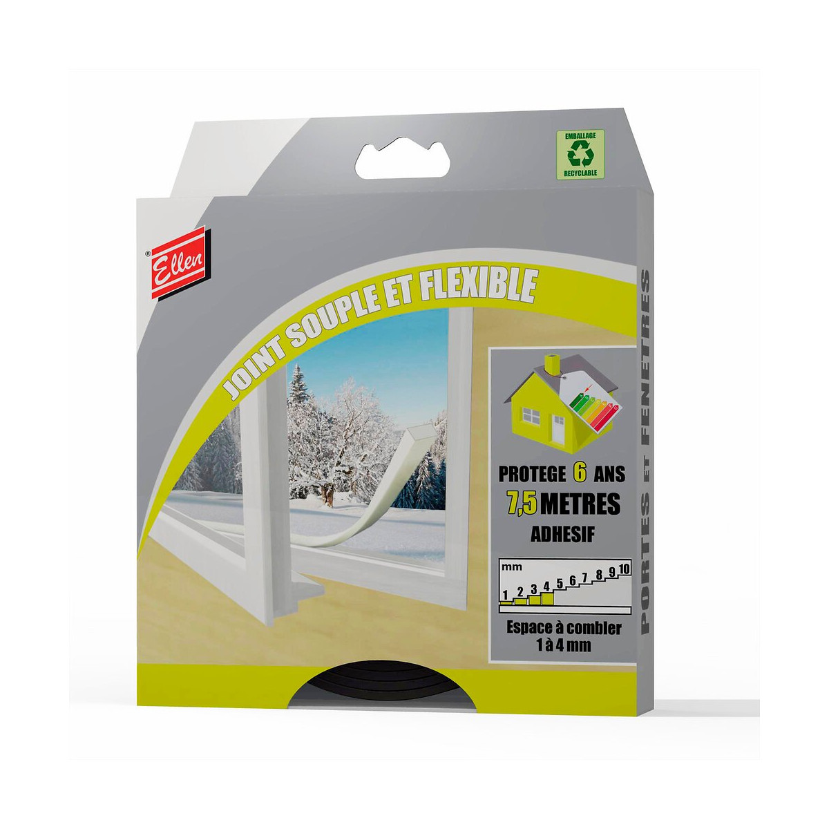 Joint de rénovation adhésif en mousse de PVC souple et flexible pour l'encadrement de portes et fenêtres - Forme : Rectangulaire - Espace à combler : 1 à 4 mm - Longueur : 7,5 m - Coloris : Noir