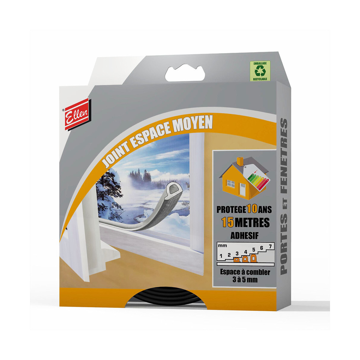 Joint souple de rénovation en caoutchouc cellulaire avec support adhésif tramé, forme P - Espace à combler : 3 à 5 mm - Longueur : 15 m - Coloris : Noir
